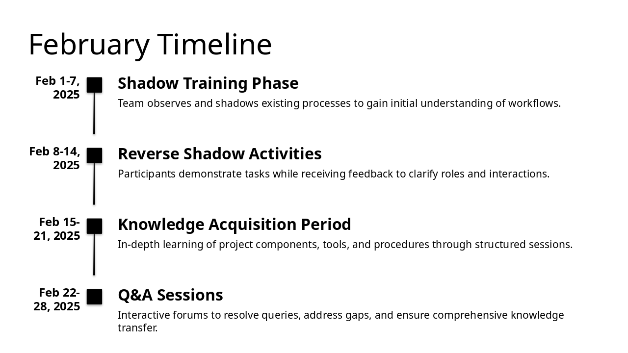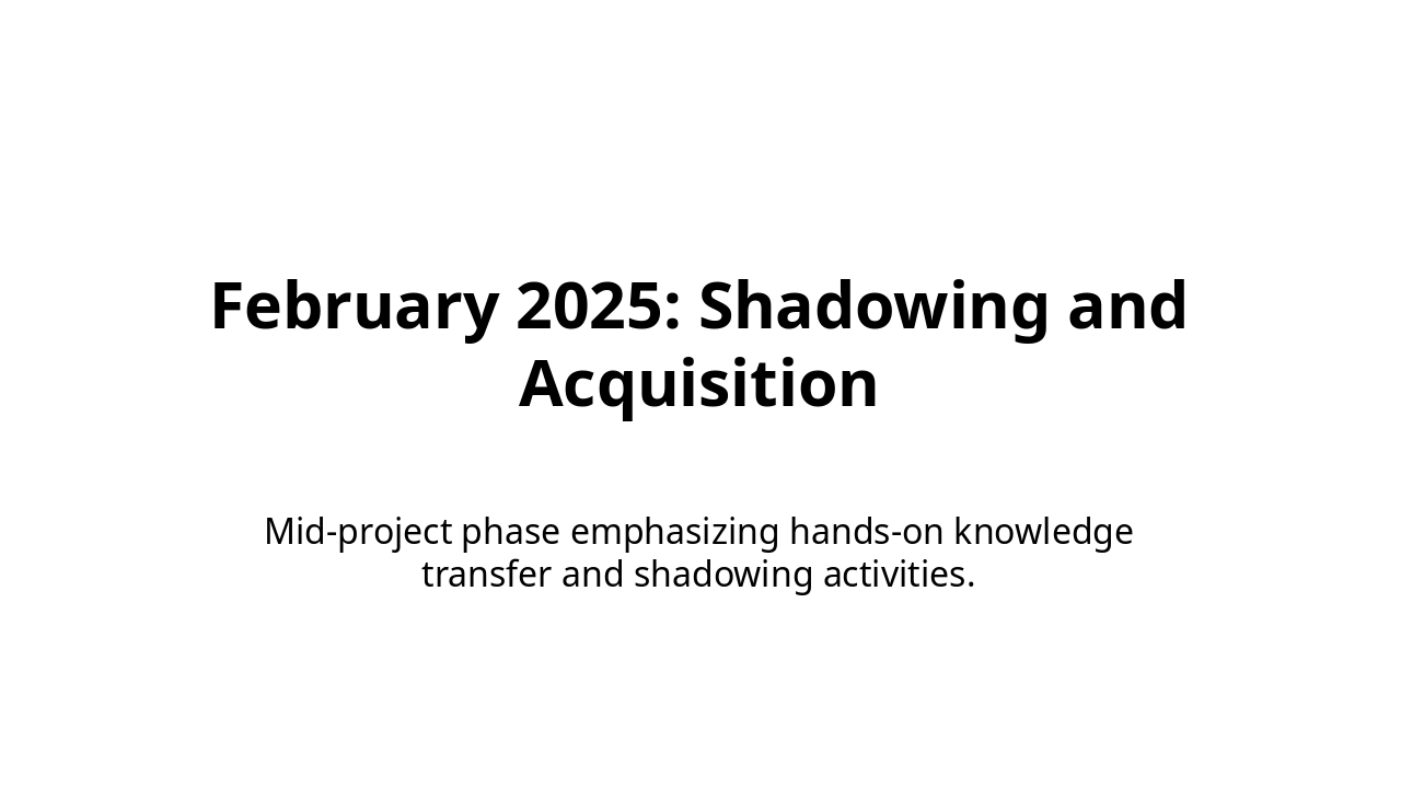 Highlighting critical points like KT preparation, Shadow, Handover, Go-live, and Hyper Care.