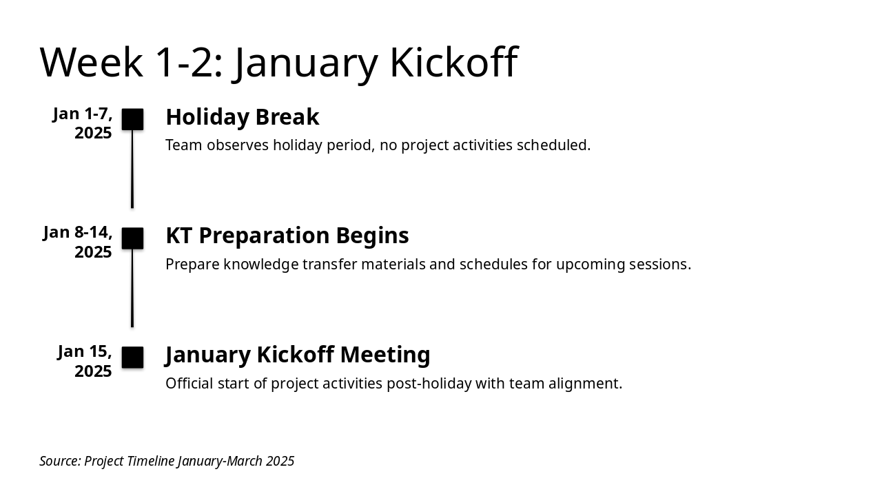 Overview of the project scope and timeline from January to March 2025.