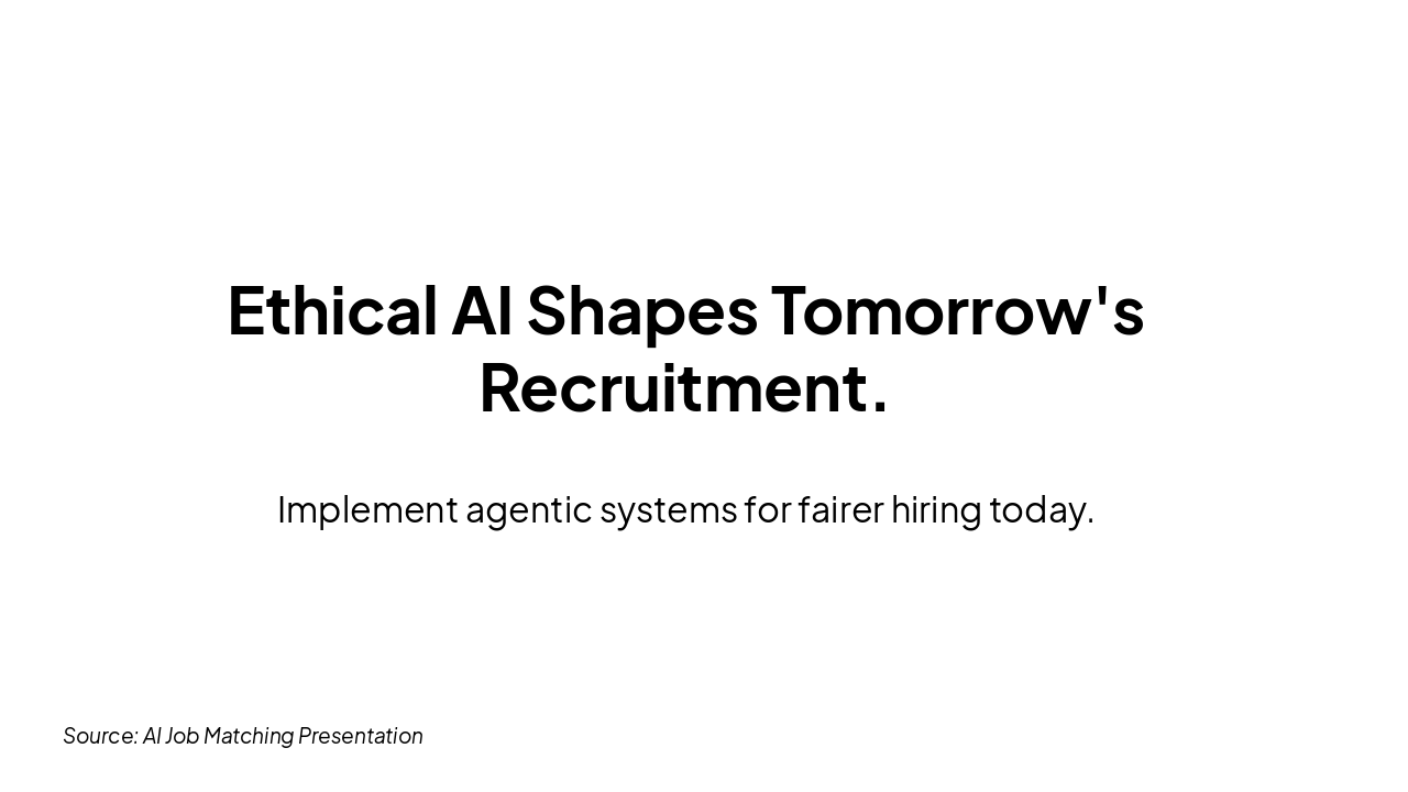 The conclusion slide, titled "Case Studies, Bias, & Future," states that "Ethical AI Shapes Tomorrow's Recruitment." Its subtitle calls to "Implement agentic systems for fairer hiring today."