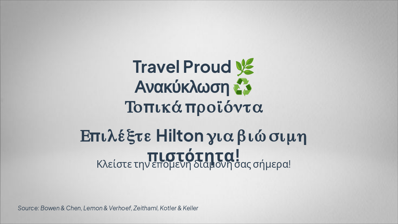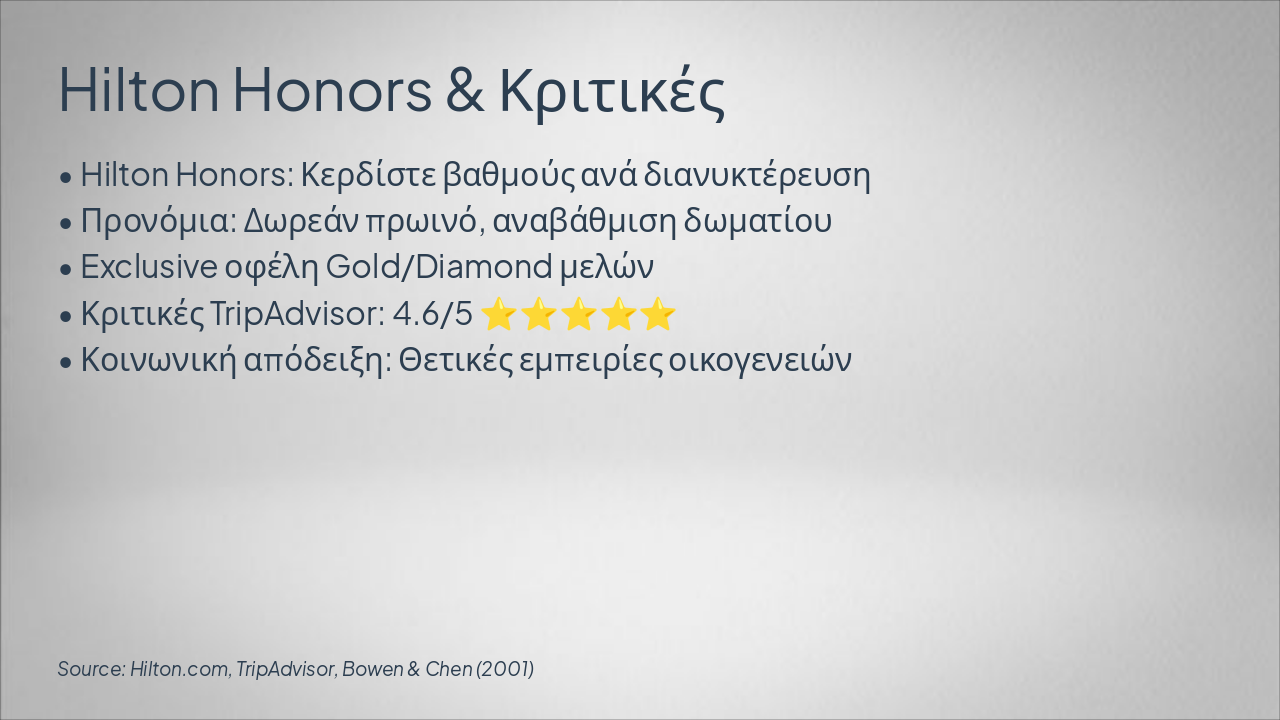 Η διαφάνεια «Προσωποποιημένη Εμπειρία & Value for Money» παρουσιάζει οικογενειακά πλεονεκτήματα όπως πισίνες για όλη την οικογένεια, ειδικό μενού παιδιών, δωρεάν πρωινό και δωρεάν διαμονή για το πρώτο παιδί. Αυτά τα χαρακτηριστικά εστιάζουν σε χαλάρωση, διασκέδαση και εξοικονόμηση για οικογένειες.