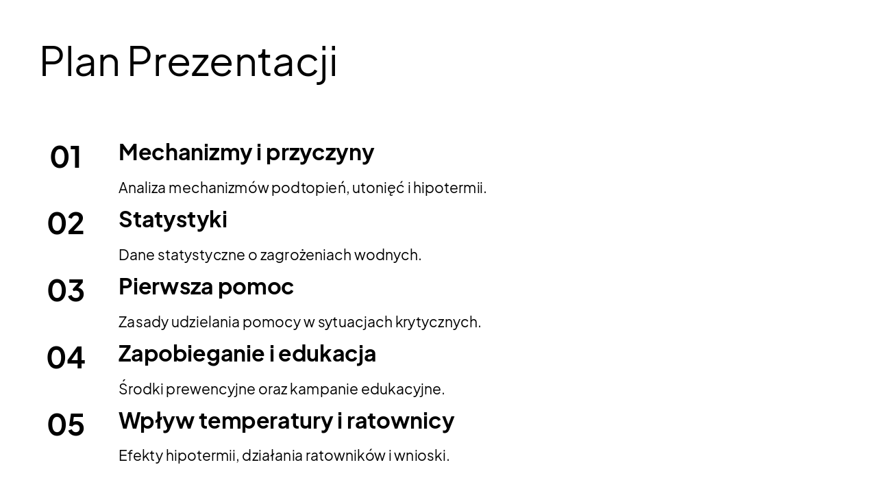 Source: Kompleksowa prezentacja o podtopieniach, utonięciach i hipotermii: mechanizmy, przyczyny, statystyki, pierwsza pomoc, zapobieganie, wpływ temperatury wody, bezpieczeństwo w wodzie i na lodzie, działania ratowników oraz edukacja dotycząca zagrożeń wodnych.
