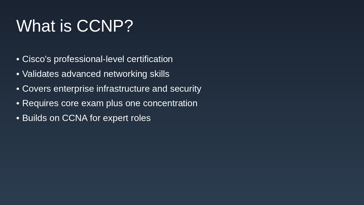 Overview of what CCNP is and why it's important for networking professionals.