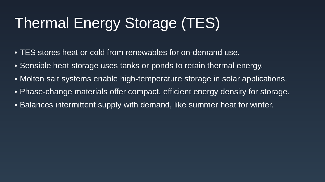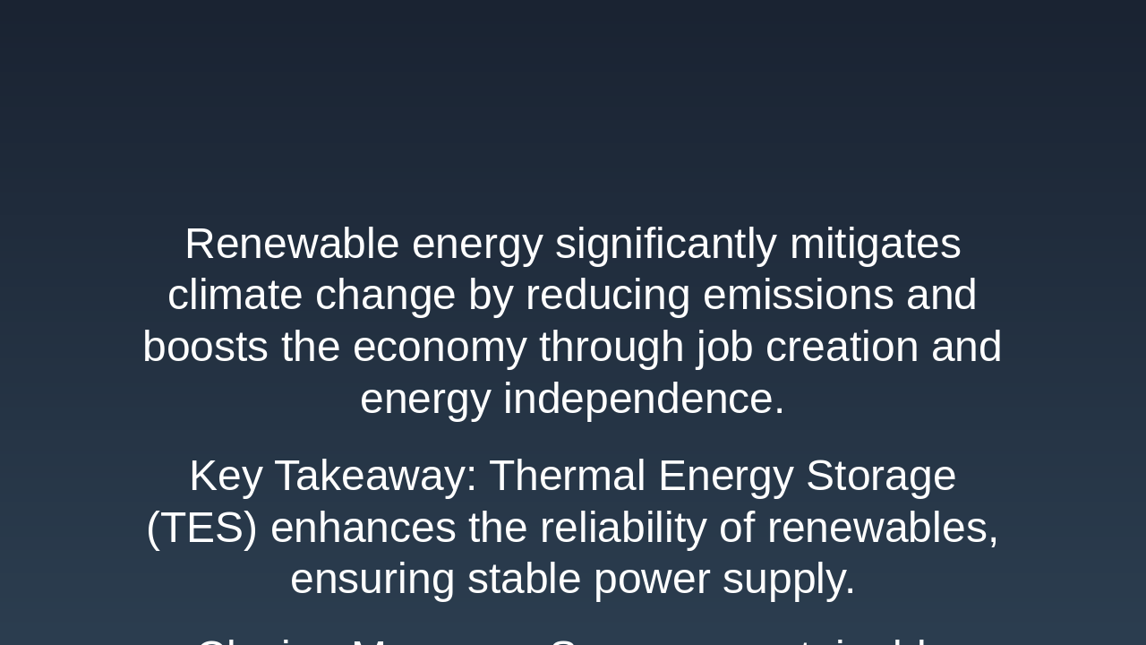 Key Takeaway: Thermal Energy Storage (TES) enhances the reliability of renewables, ensuring stable power supply.