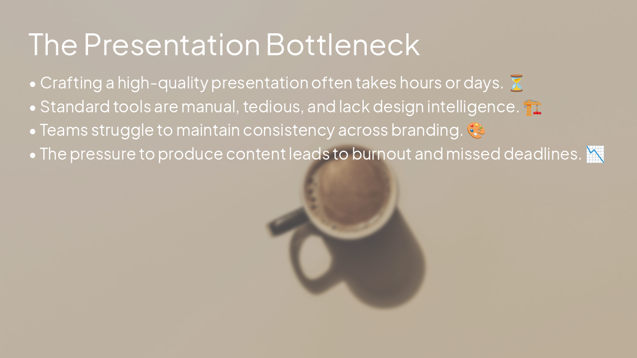 Transforming ideas into professional decks in seconds with Generative AI.
