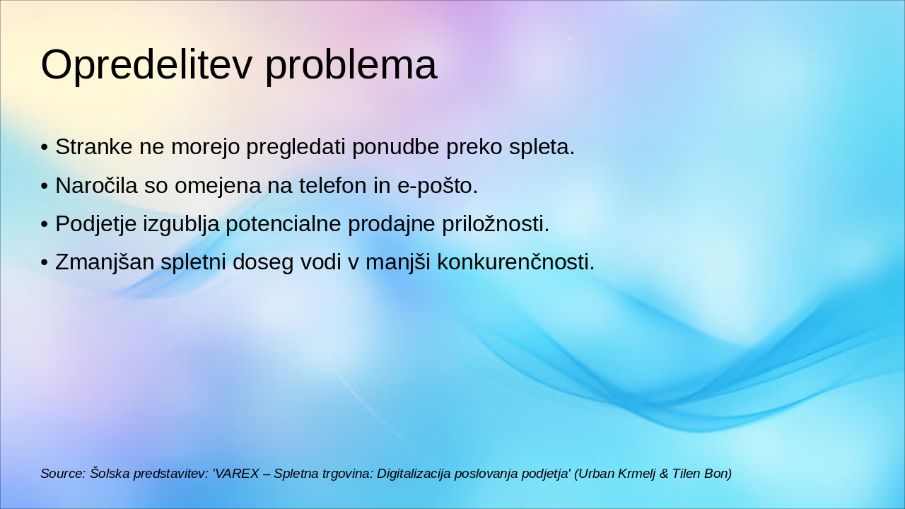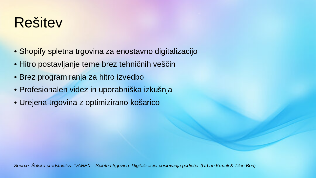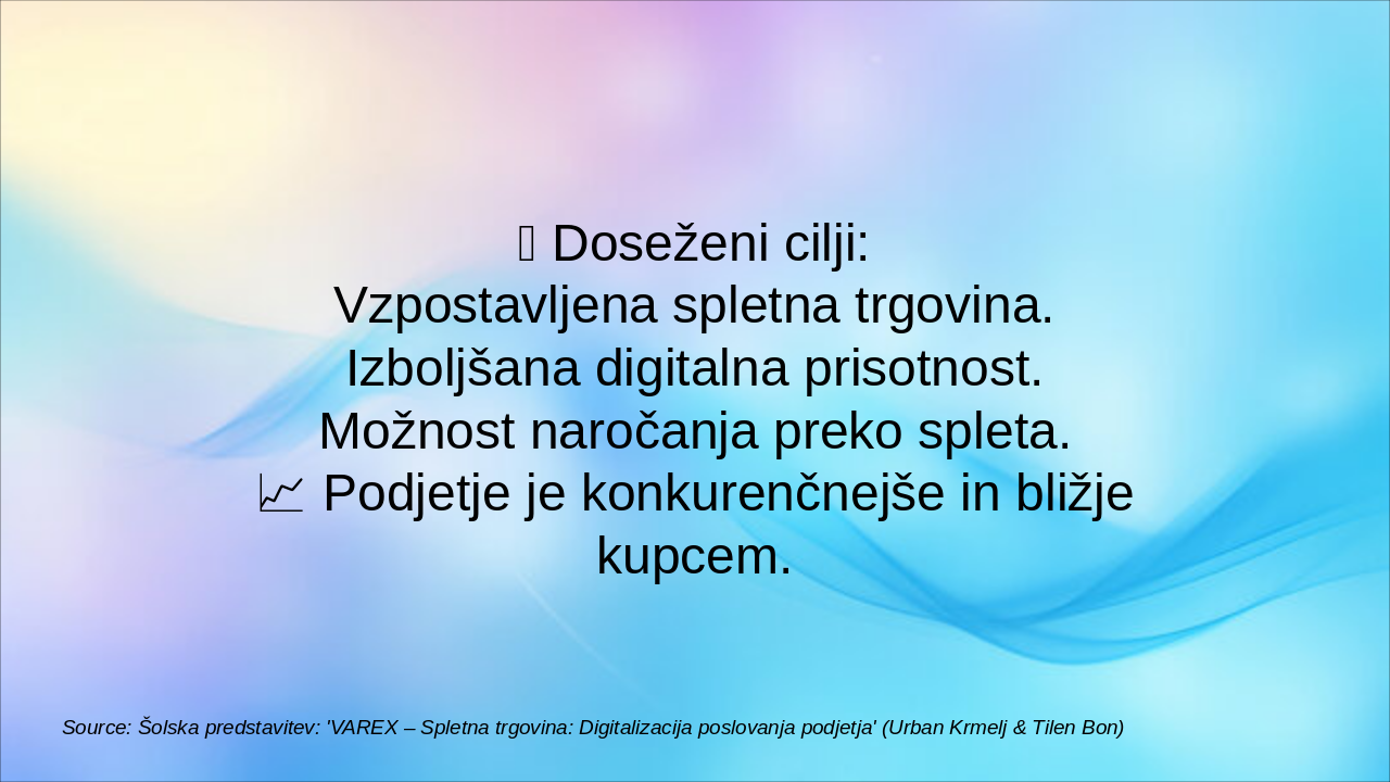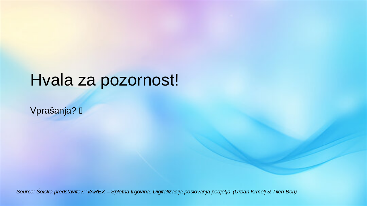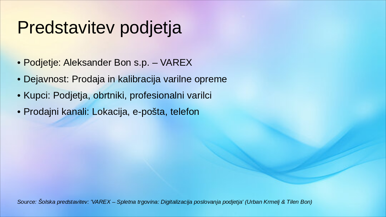 Source: Šolska predstavitev: 'VAREX – Spletna trgovina: Digitalizacija poslovanja podjetja' (Urban Krmelj & Tilen Bon)