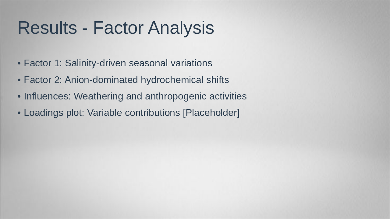 Summarize key findings: PCA/FA show seasonal patterns. Highlight strategies (monitoring, recharge) and recommendations (policy interventions). Invite questions.