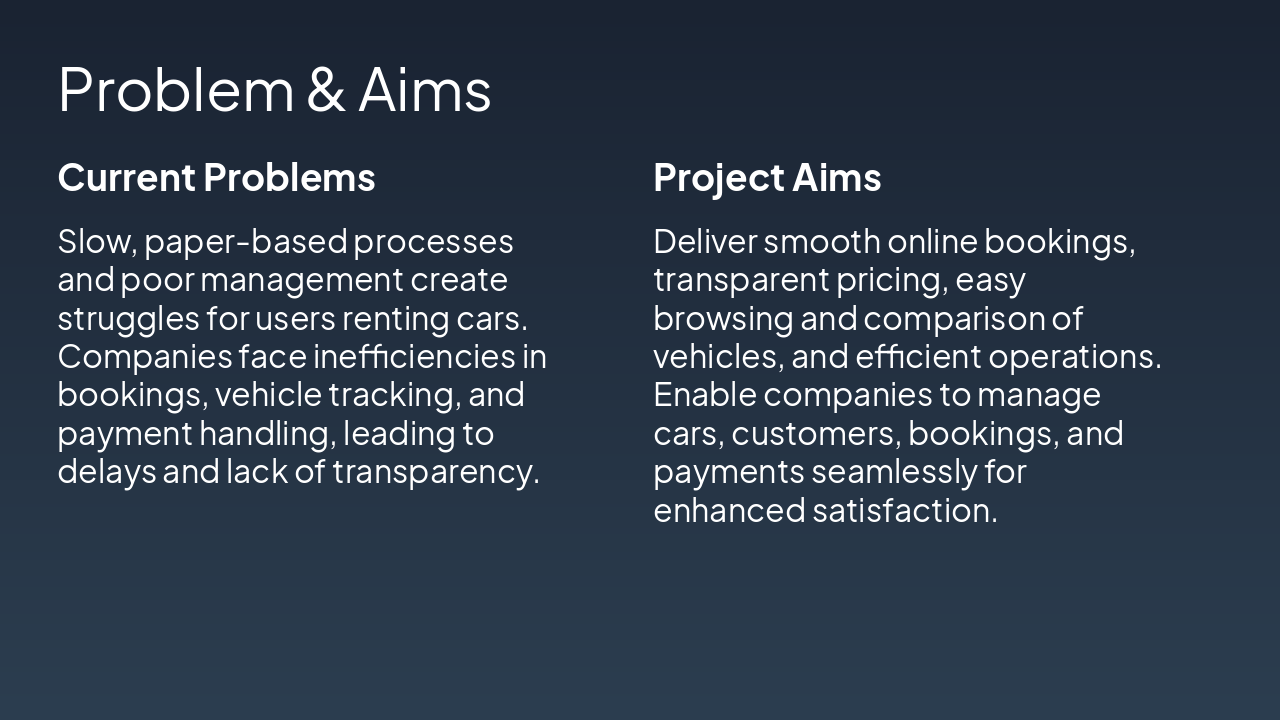 { "headers": [ "Criteria", "MealMaster", "Ride Buddy", "Common Goals" ], "rows": [ [ "Automation", "Yes: Online orders", "Yes: Bookings", "Efficiency boost" ], [ "User Convenience", "Yes: Browse & order", "Yes: Search & book", "Efficiency boost" ], [ "Digital Transformation", "Yes: Unified platform", "Yes: Paperless rentals", "Efficiency boost" ] ] }