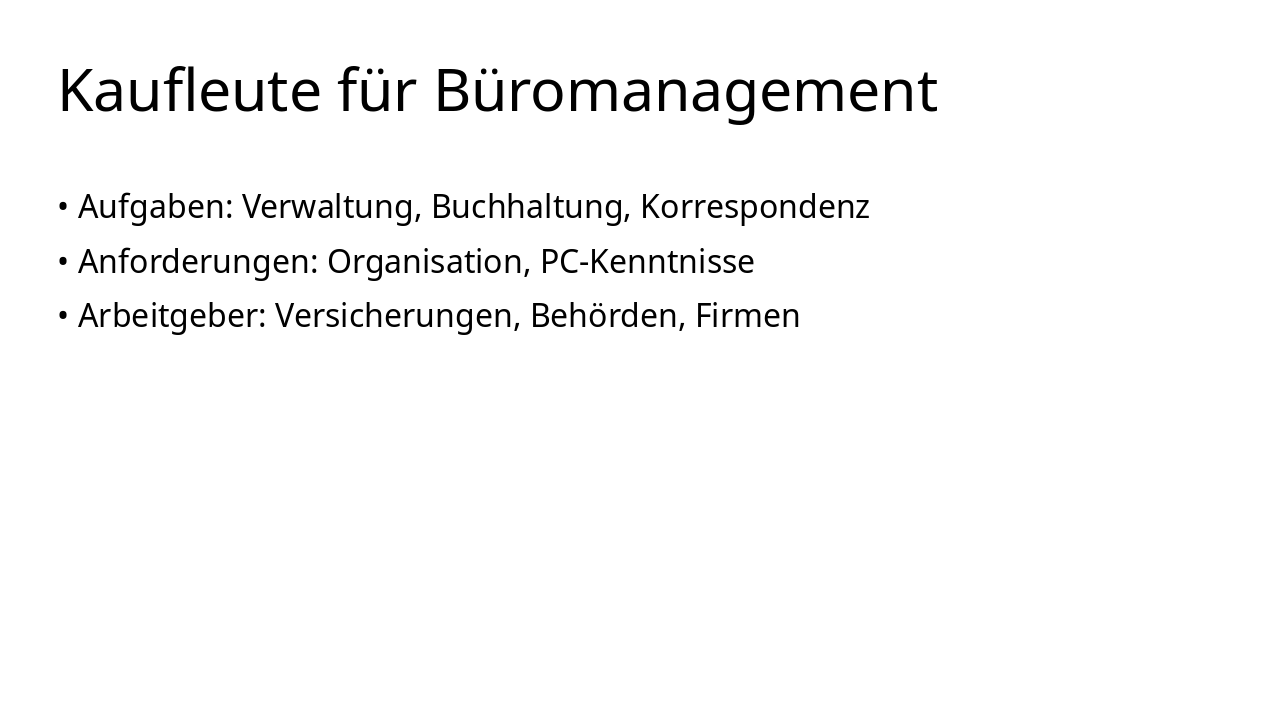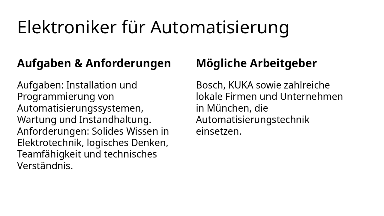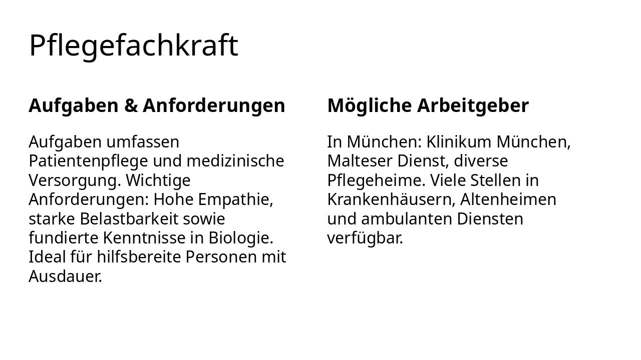 | Aufgaben & Anforderungen | Mögliche Arbeitgeber |