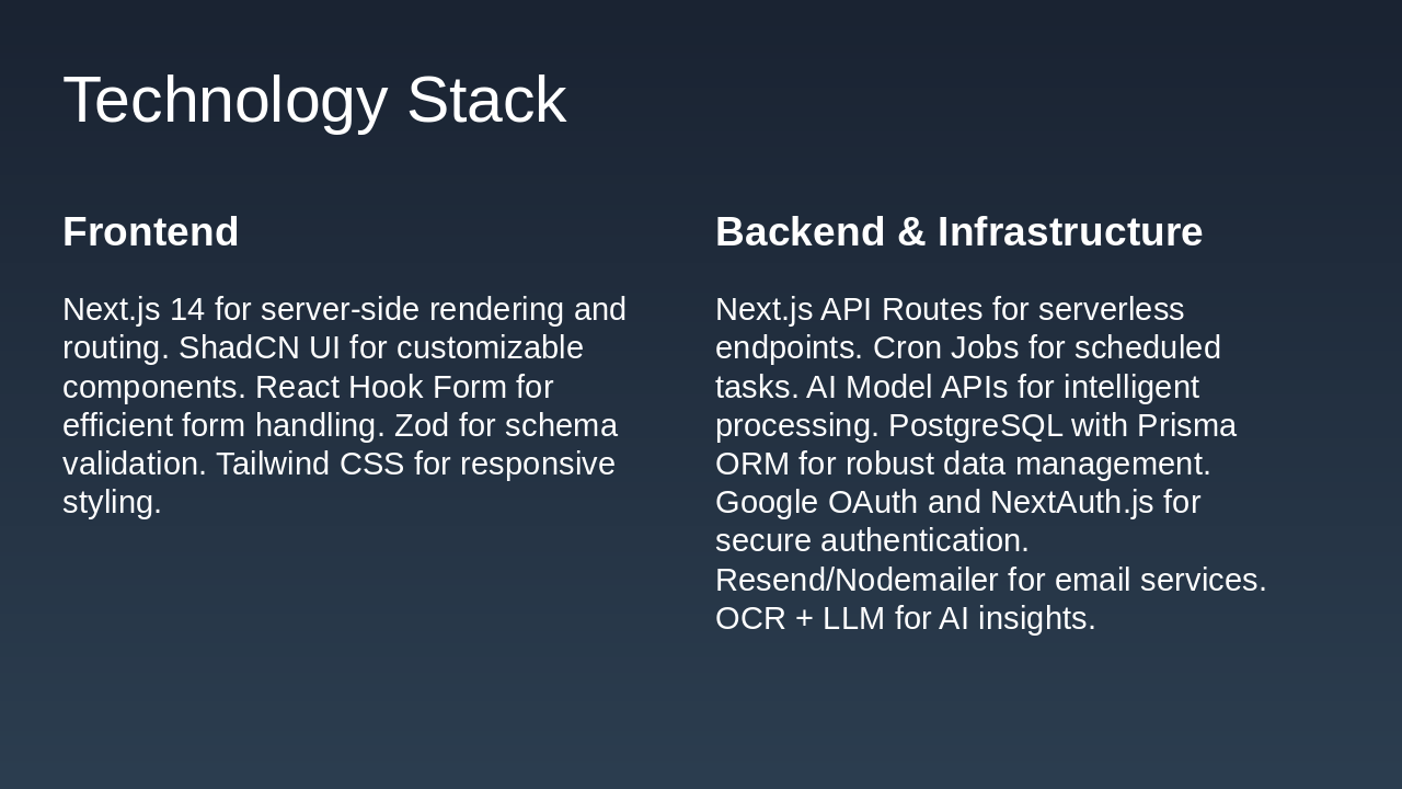 Minor Project Presentation Built with: Next.js • ShadCN UI • React Hook Form • Zod • Cron Jobs • AI Receipt Scanner • Secure Auth