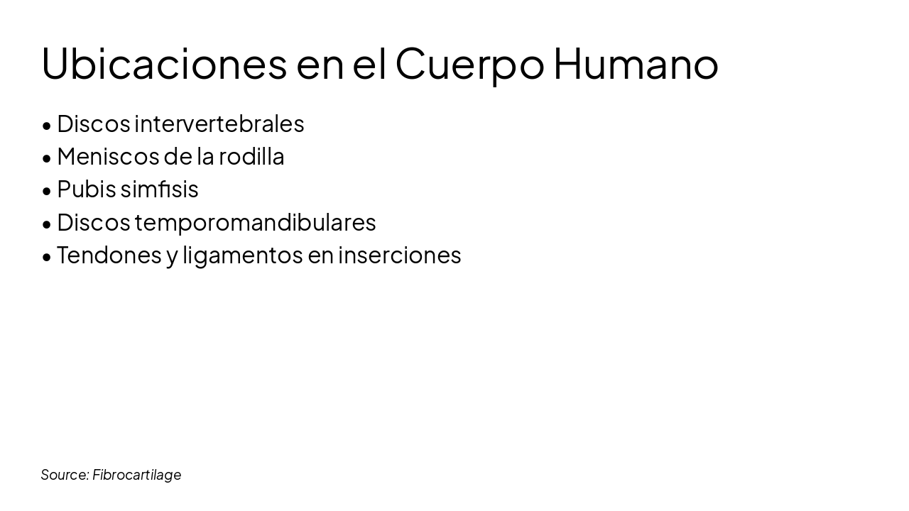 Principales sitios anatómicos donde se encuentra el fibrocartílago.