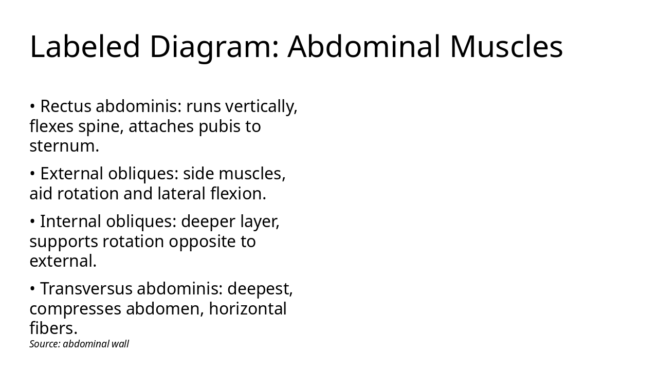 Rectus abdominis, obliques, and transversus; roles in core stability.