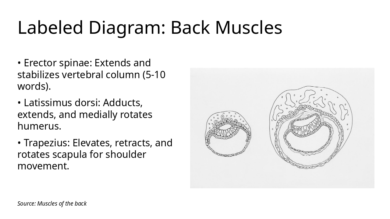 Erector spinae, latissimus dorsi, trapezius; support and movement functions.