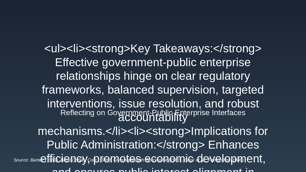 <ul><li><strong>Key Takeaways:</strong> Effective government-public enterprise relationships hinge on clear regulatory frameworks, balanced supervision, targeted interventions, issue resolution, and robust accountability mechanisms.</li><li><strong>Implications for Public Administration:</strong> Enhances efficiency, promotes economic development, and ensures public interest alignment in mixed economies.</li><li><strong>Closing Message:</strong> Navigating interfaces shapes resilient public sectors.</li><li><strong>Call to Action:</strong> What questions do you have on these dynamics?</li></ul>