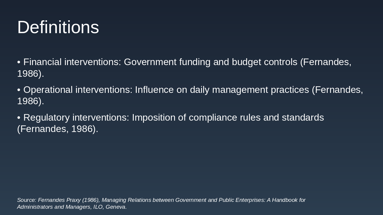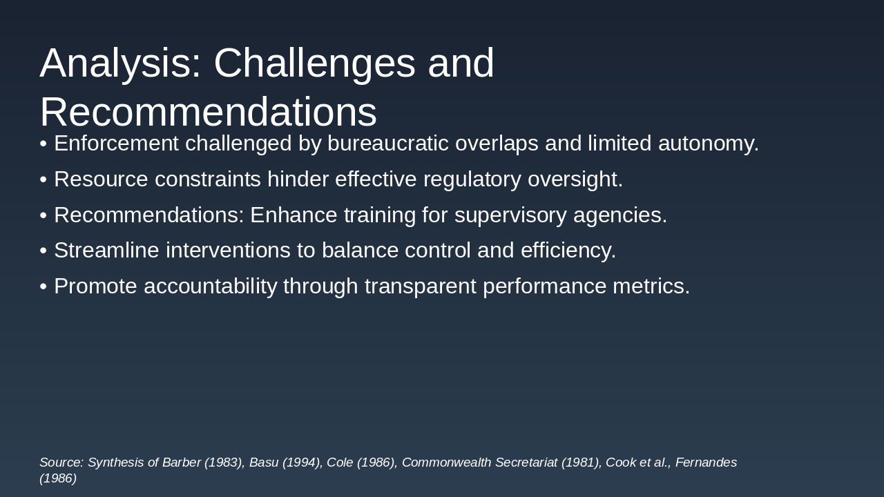 Source: Barber (1983), Basu (1994), Cole (1986), Commonwealth Secretariat (1981), Cook et al., Fernandes (1986)