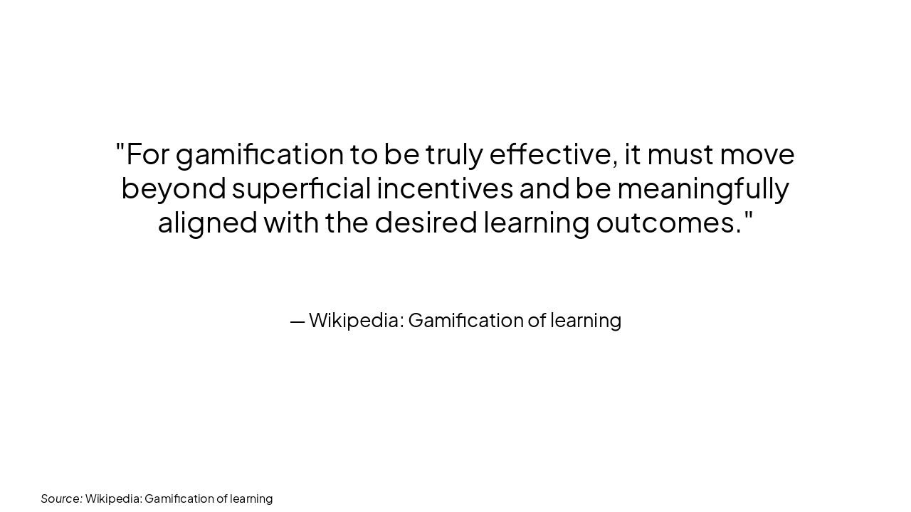 > For gamification to be truly effective, it must move beyond superficial incentives and be meaningfully aligned with the desired learning outcomes.