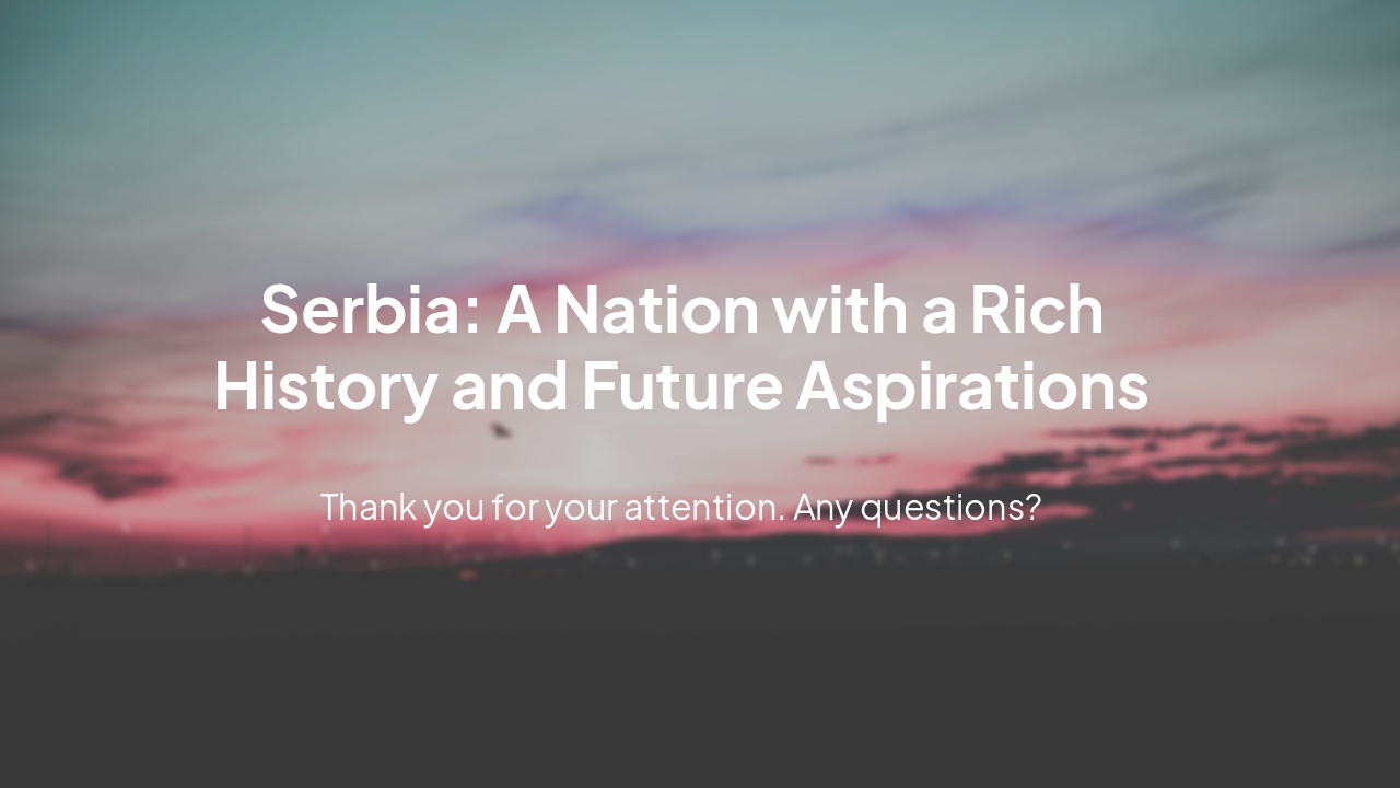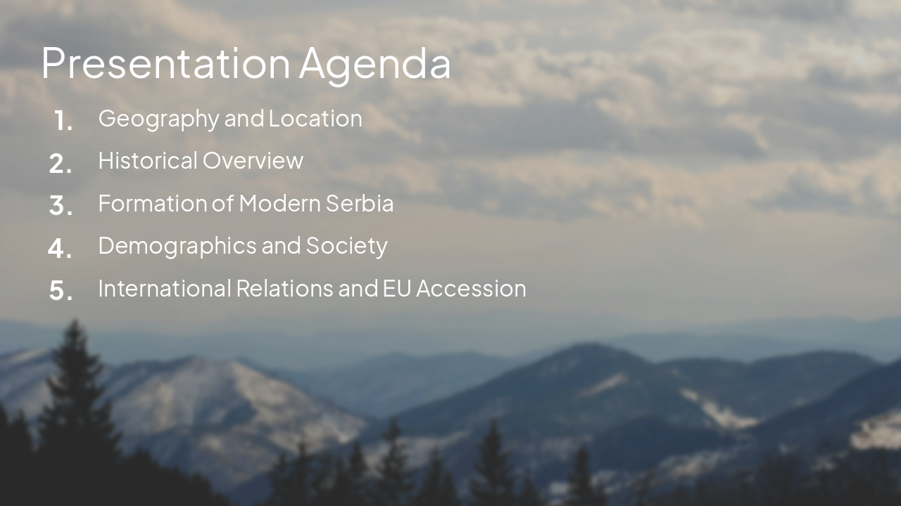 This presentation offers a comprehensive introduction to the Republic of Serbia, exploring its geographical position in Southeast Europe, rich historical timeline from medieval kingdoms to modern independence, demographic and societal profile, and EU