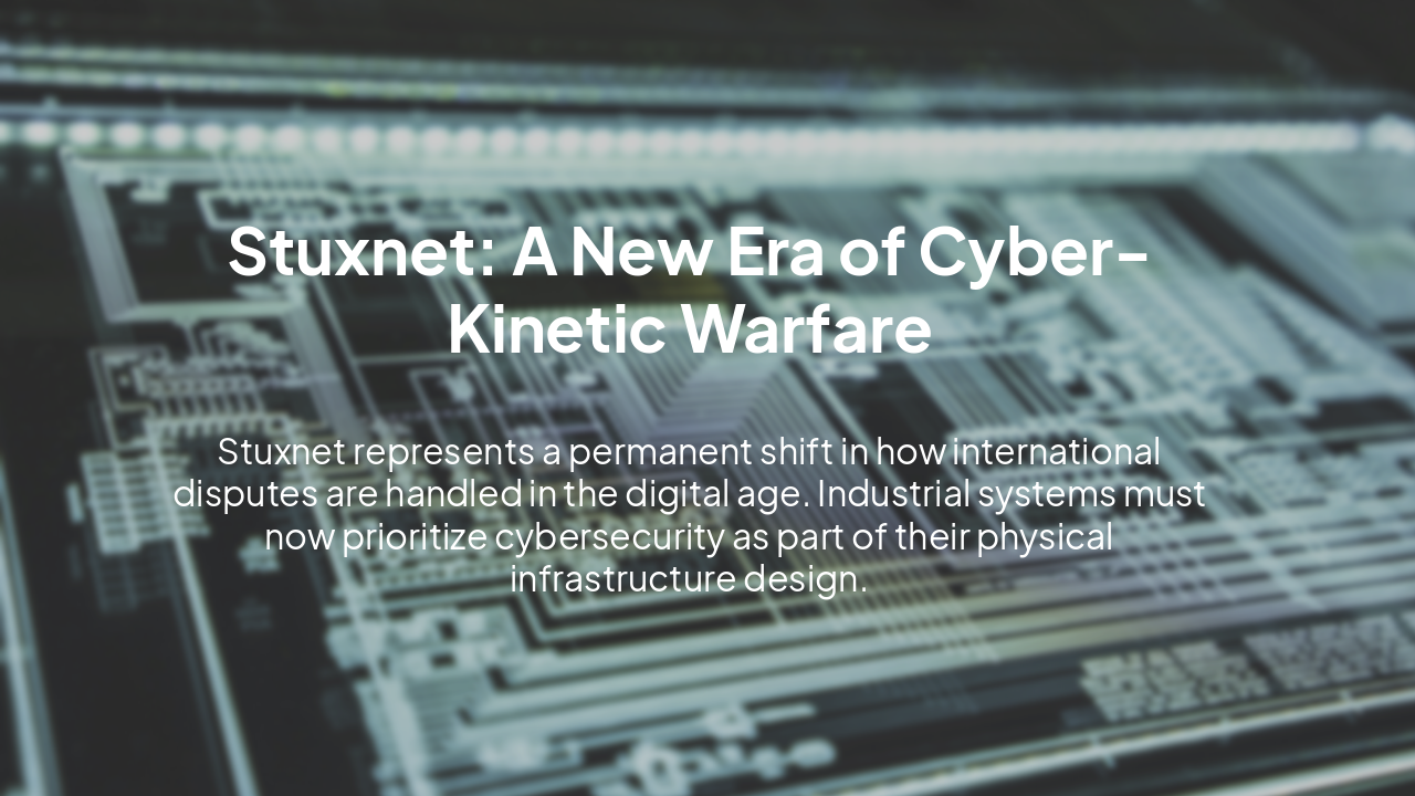 Stuxnet represents a permanent shift in how international disputes are handled in the digital age. Industrial systems must now prioritize cybersecurity as part of their physical infrastructure design.