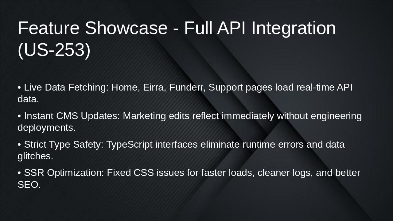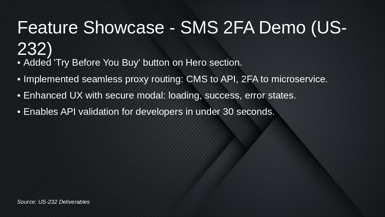 API integration, 2FA flow, and live demonstration of improvements.