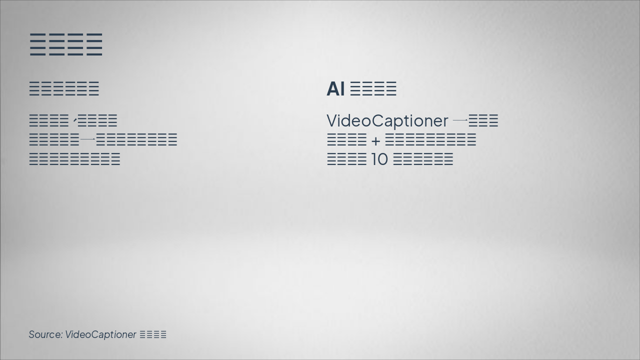 | 手动输入、逐帧对齐 耗时费力,一小时视频需数小时 易出错,需专业技能 | VideoCaptioner一键生成 语音识别+智能断句,秒级完成 效率提升10倍,精准智能 |