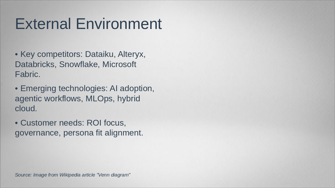 Competitors: Dataiku, Alteryx, Databricks, Snowflake, Microsoft Fabric
