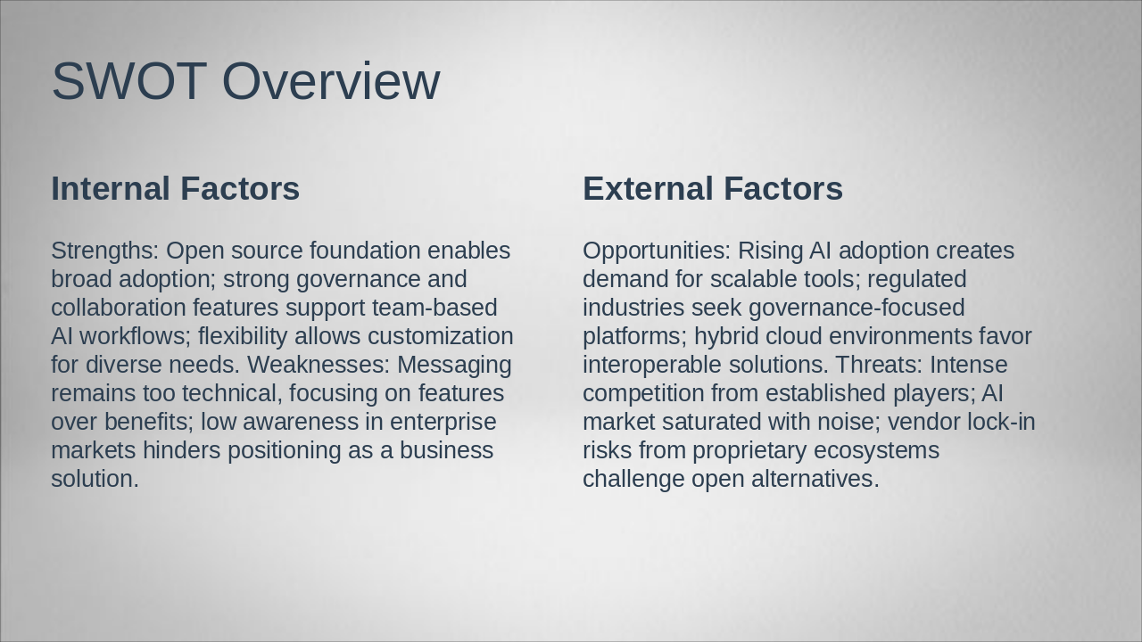 Bullets: Too technical, Business outcomes not highlighted, Limited positioning, Few case studies, OS→Enterprise path unclear.