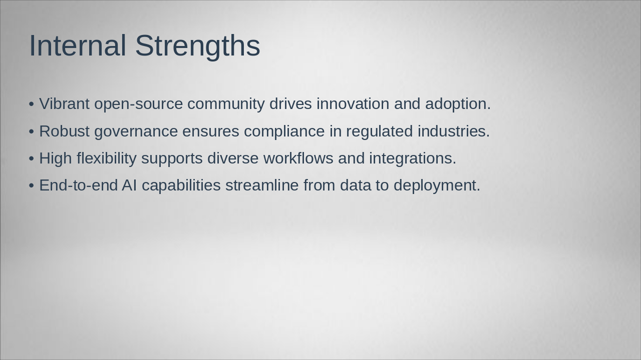 Visual: 4 icons (👥 Community, 🔒 Governance, 🧩 Flexibility, 🧠 End-to-end AI)