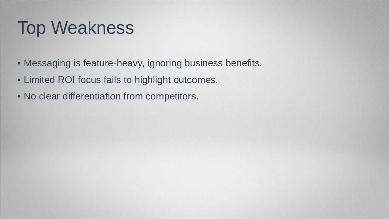 Issues: Feature-heavy, limited ROI messaging, no differentiation.