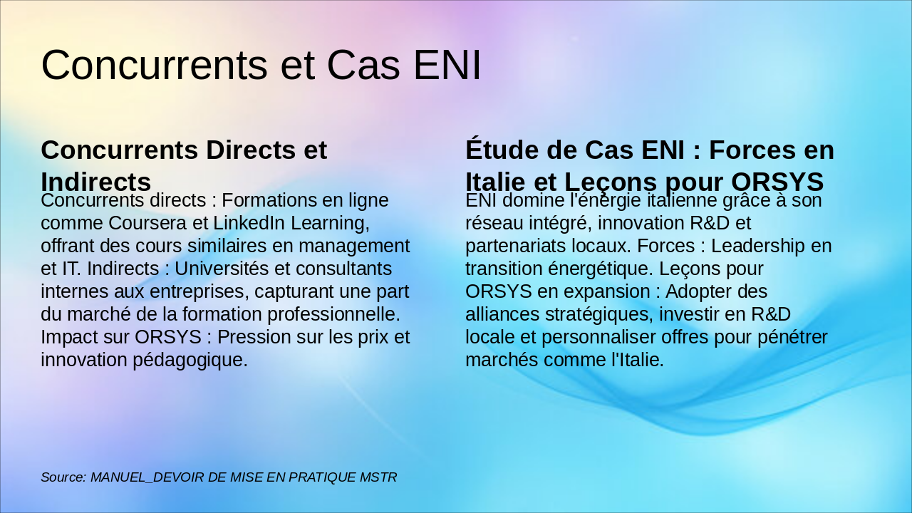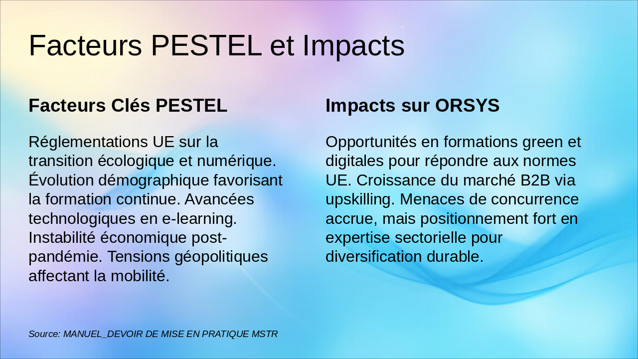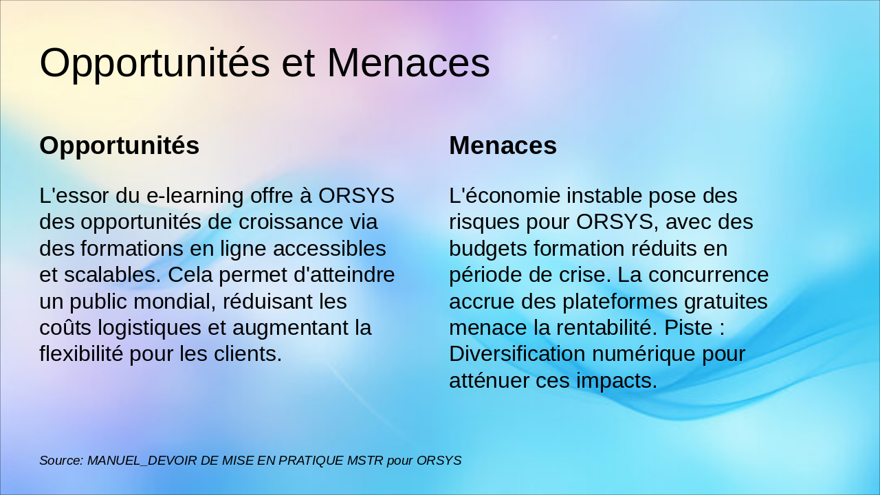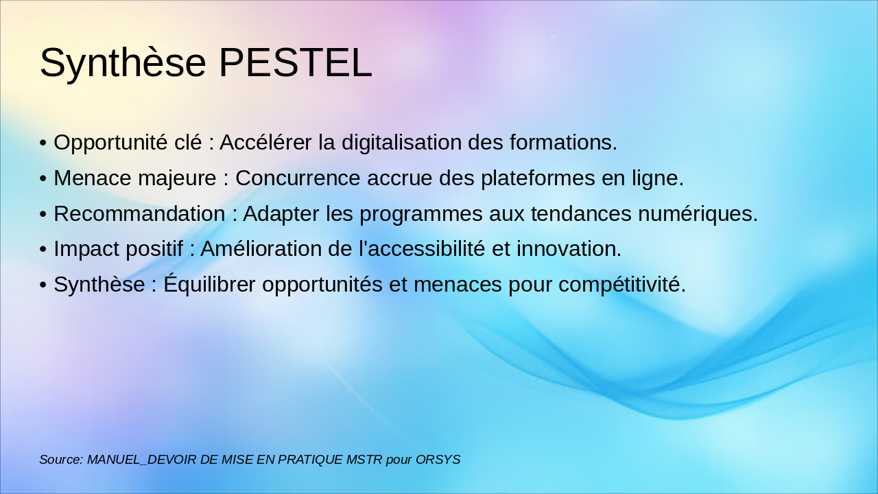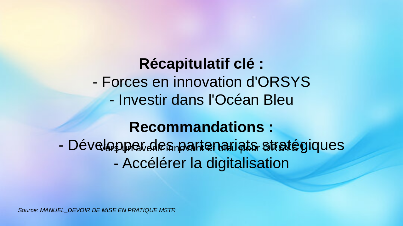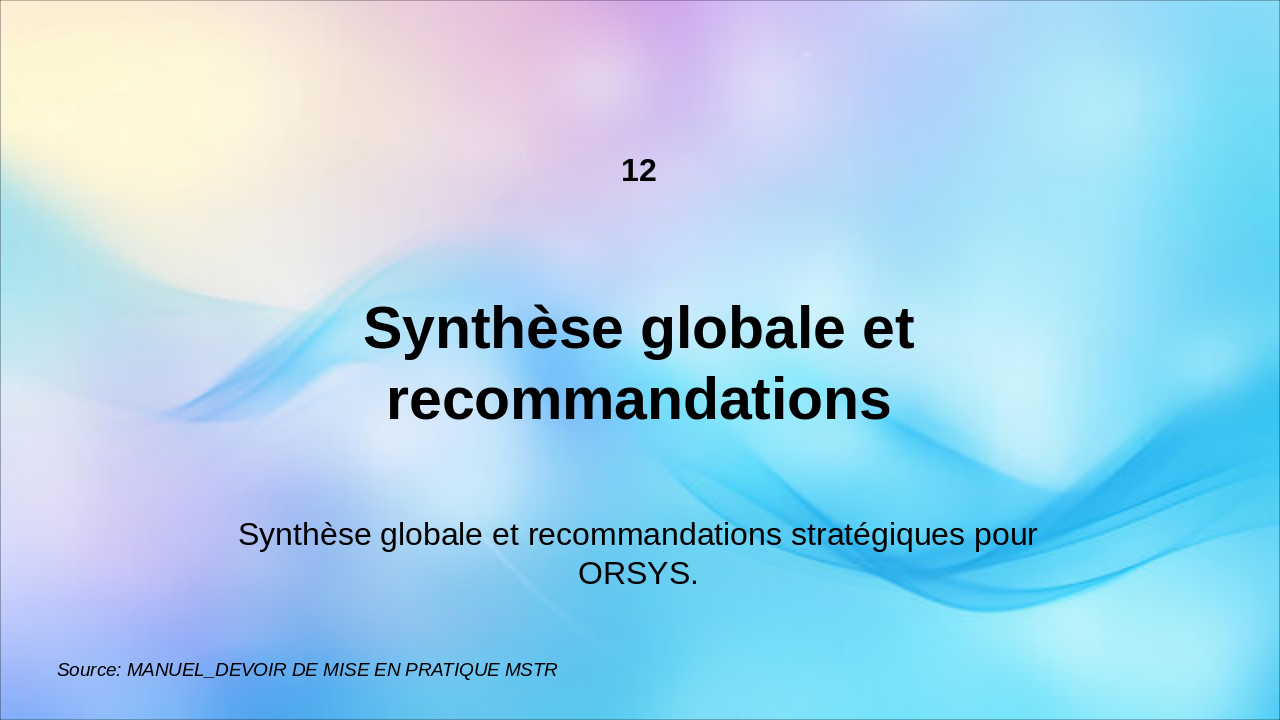 Synthèse globale et recommandations stratégiques Source: Présentation PowerPoint basée sur le document 'MANUEL_DEVOIR DE MISE EN PRATIQUE MSTR' pour ORSYS.