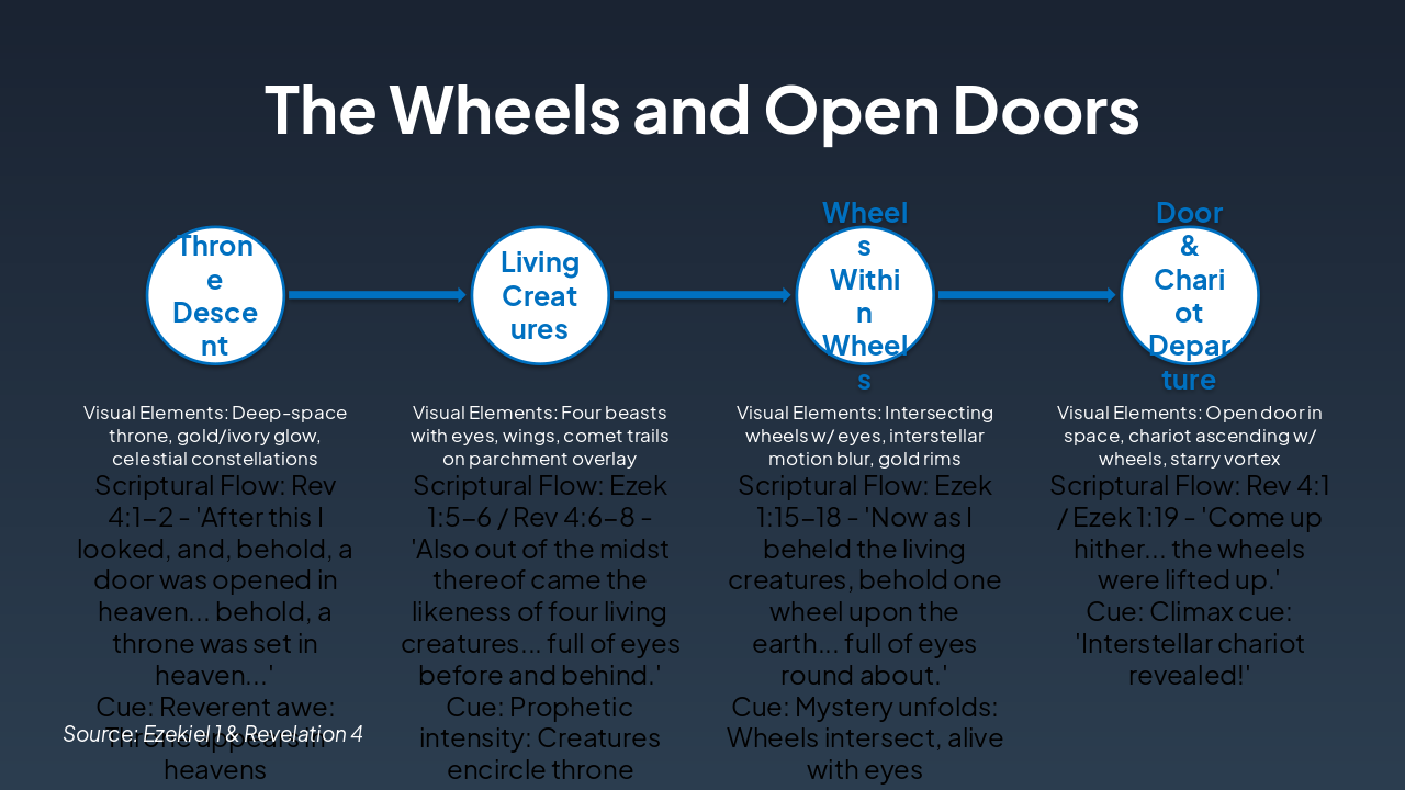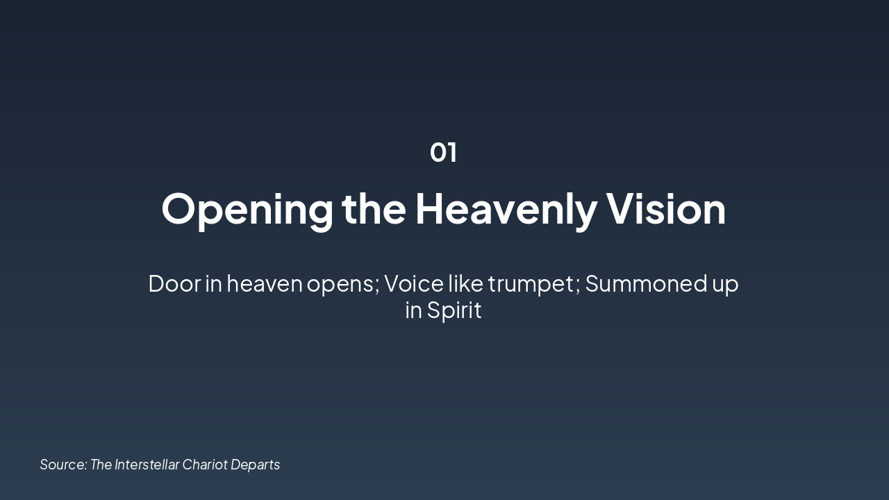 John the Apostle describes a heavenly vision from Revelation, where a door opens in heaven and a trumpet-like voice invites him to "come up hither" to witness future events. Immediately, he enters the spirit and sees a throne set in heaven.
