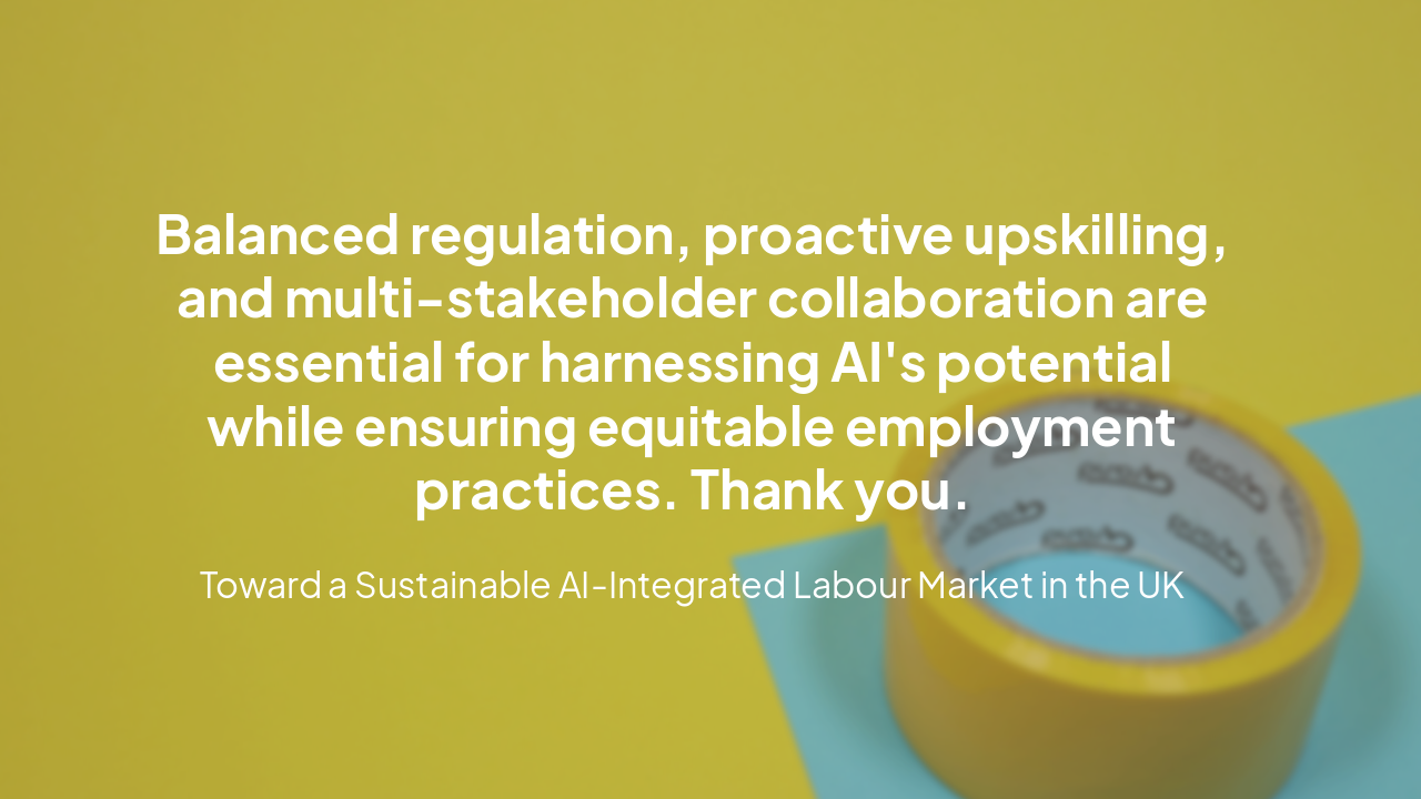 Balanced regulation, proactive upskilling, and multi-stakeholder collaboration are essential for harnessing AI's potential while ensuring equitable employment practices. Thank you.