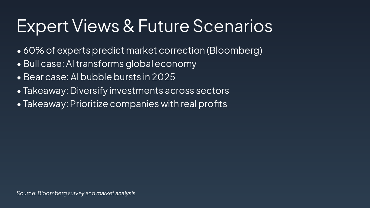 Summarize key takeaways: AI's transformative potential amid bubble risks. Emphasize prudent investing strategies.