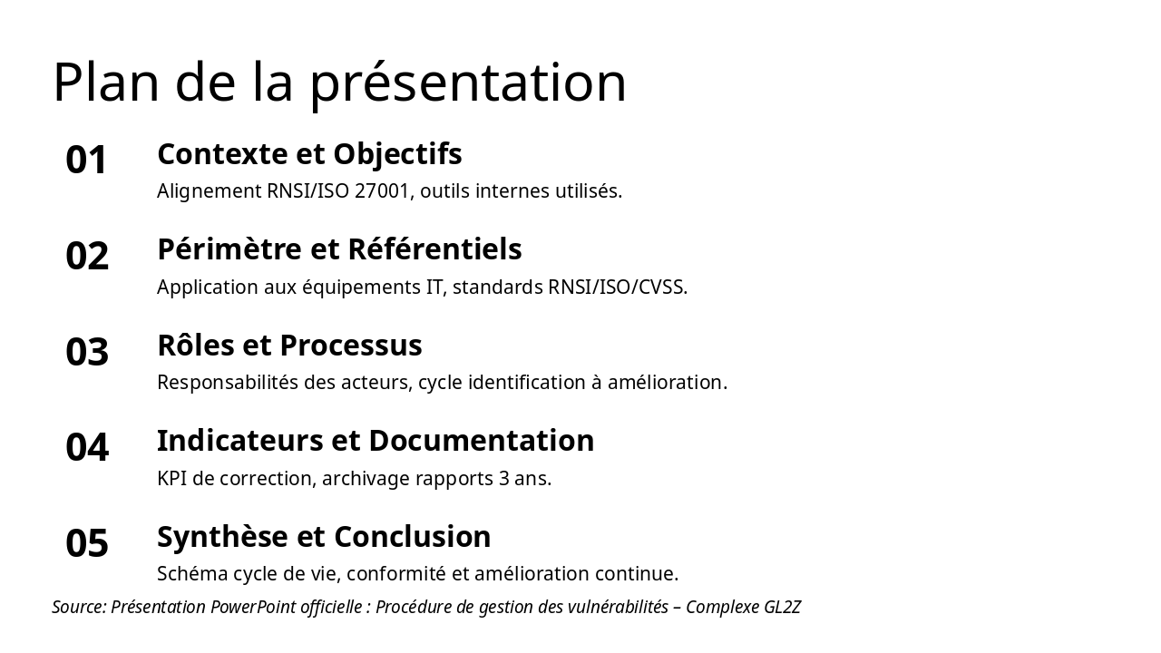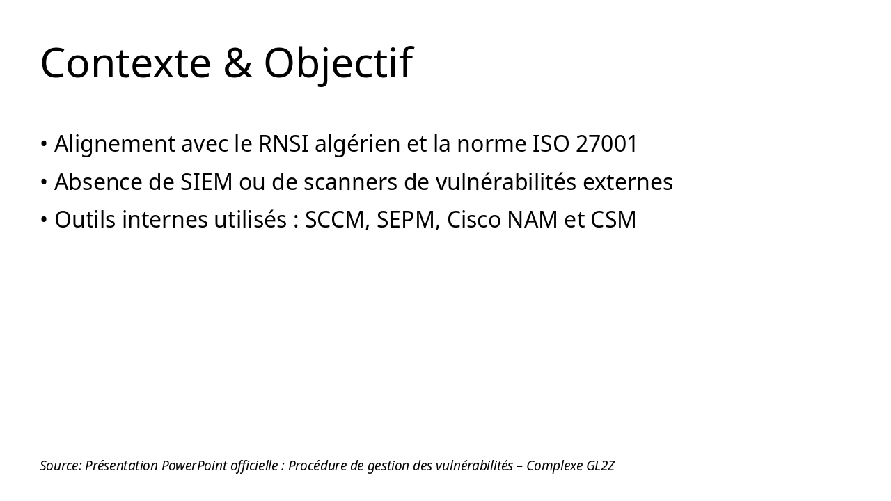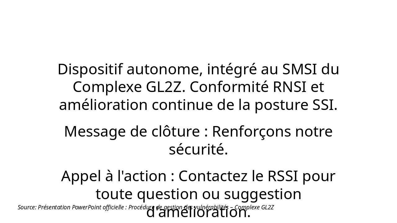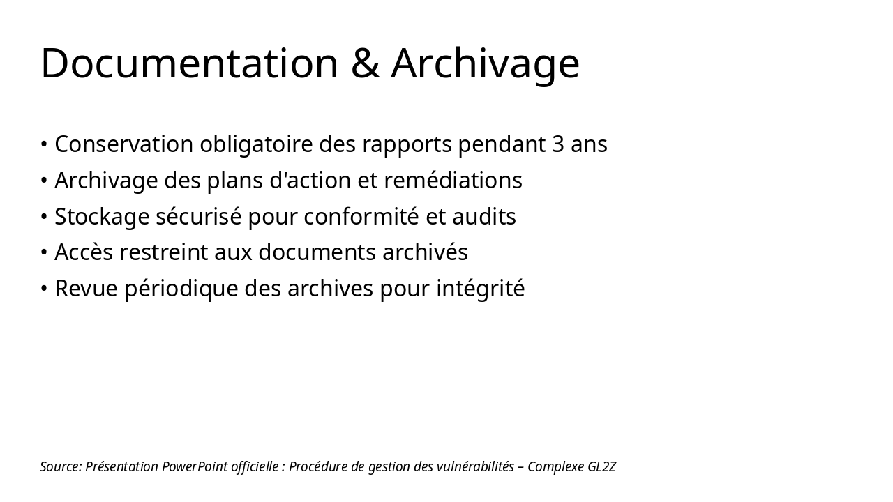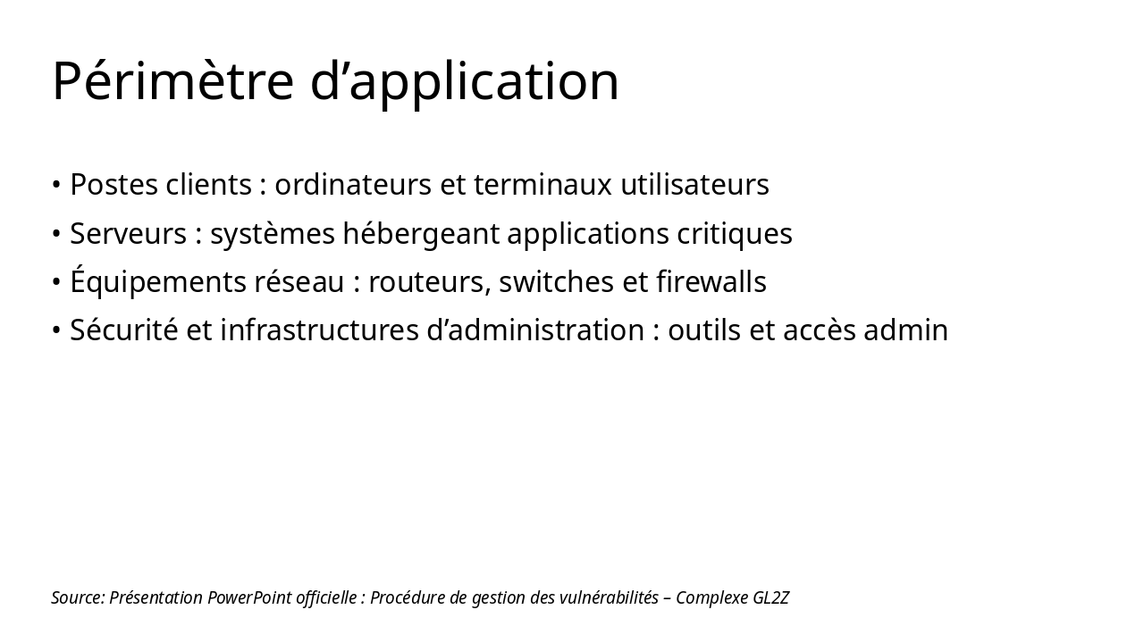 Source: Procédure de gestion des vulnérabilités – Complexe GL2Z