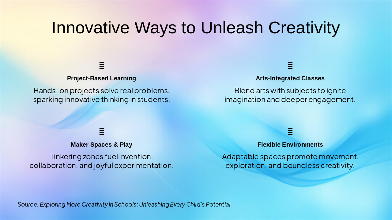 Source: Exploring More Creativity in Schools: Unleashing Every Child’s Potential
