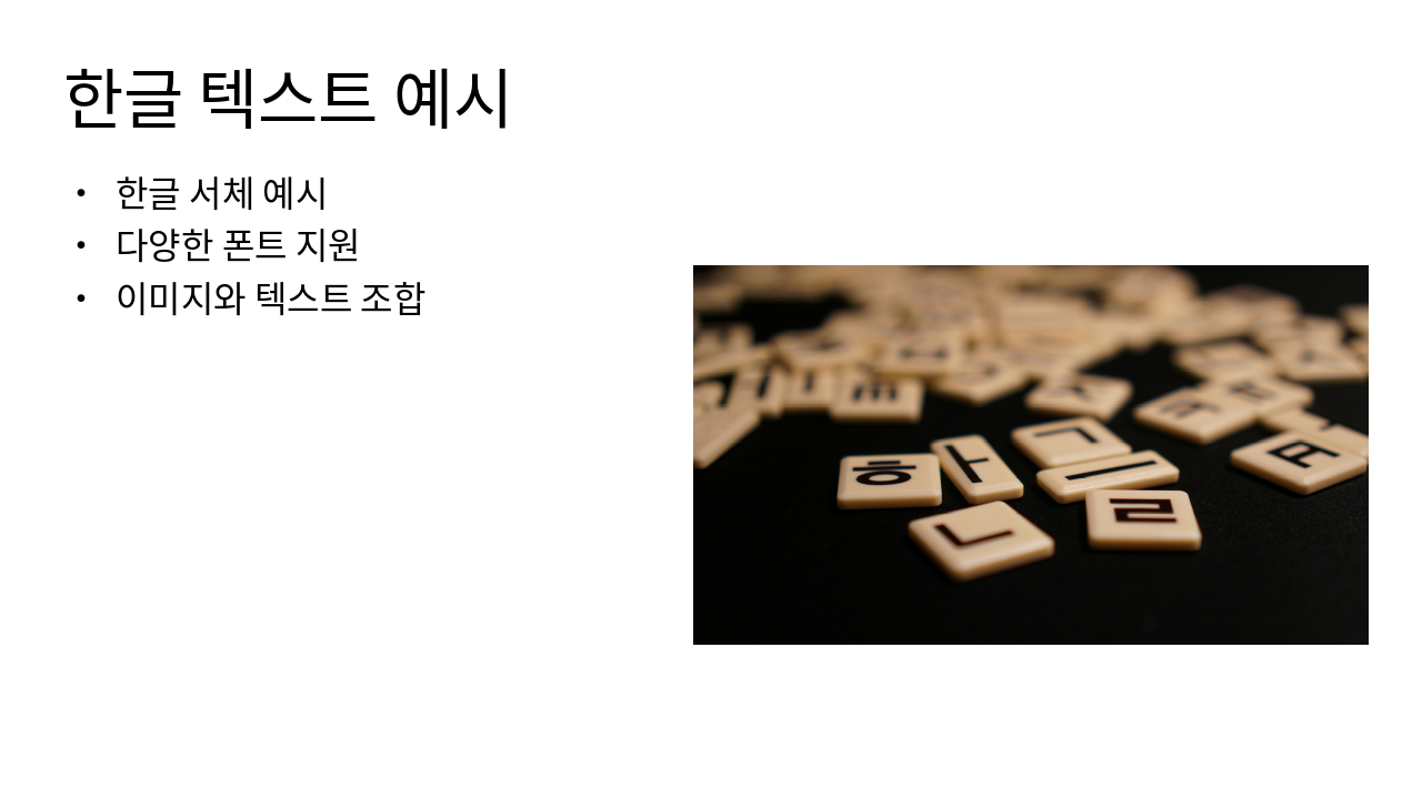 프레젠테이션 제작 도구에서 한글 텍스트 완벽 지원