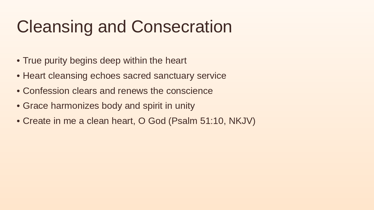 Conclude with a pastoral invitation to rest in God's peace, transitioning smoothly from discernment to daily application. Emphasize the journey from cleansing to glorifying the Creator.