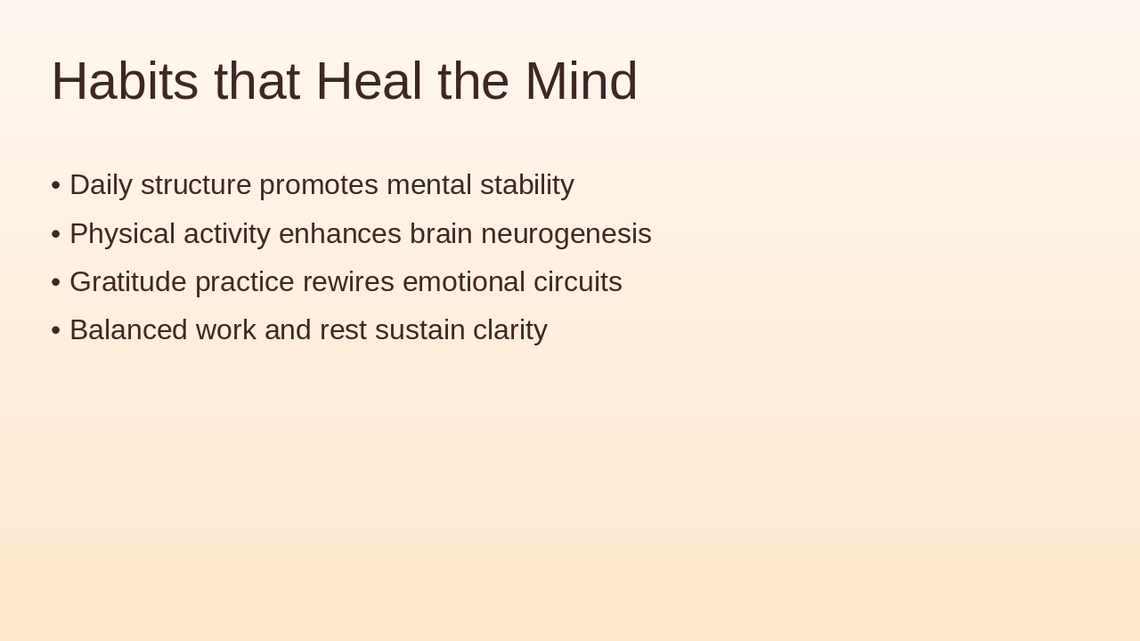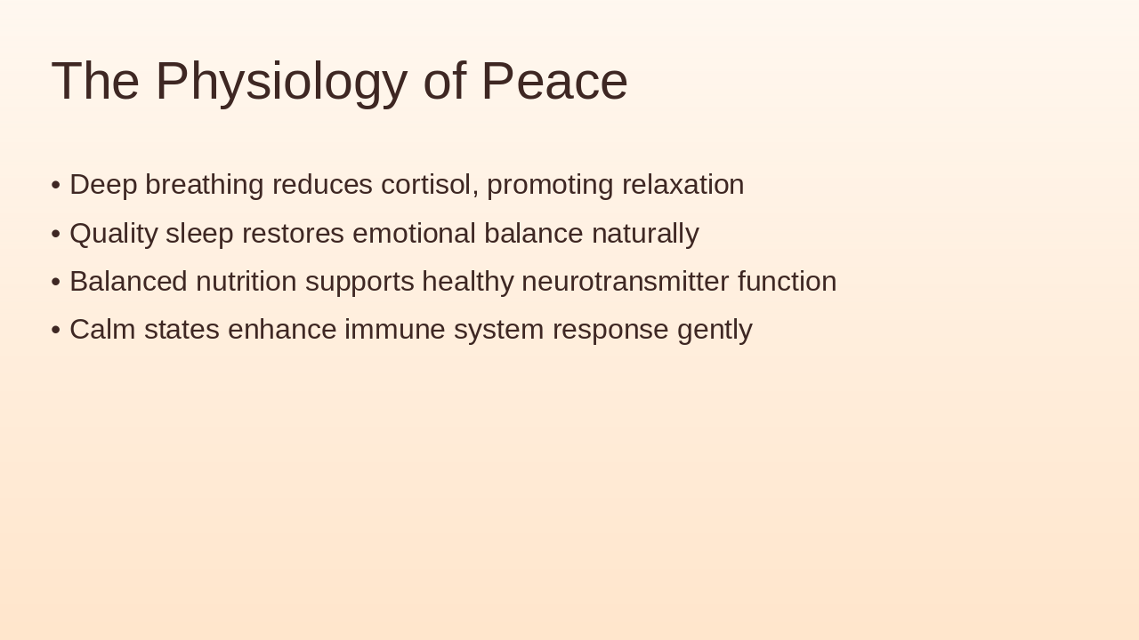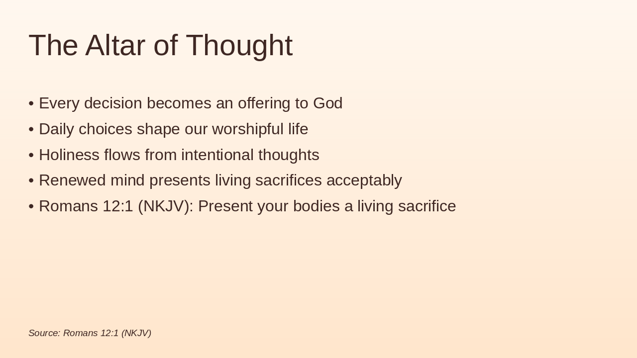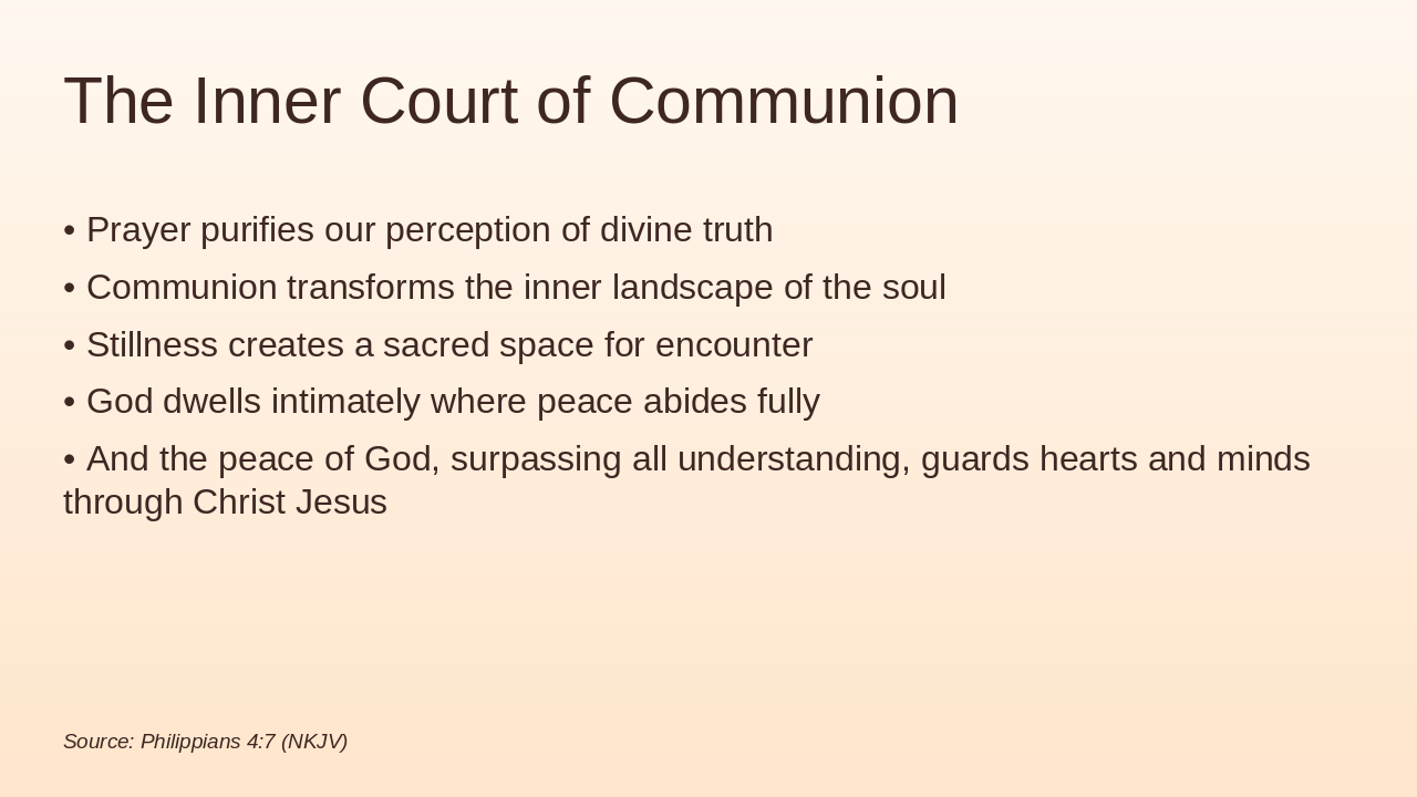 Closing Message: Restored in Peace. Call-to-Action: Surrender your thoughts today; embrace divine clarity and communion with God.