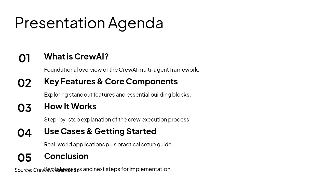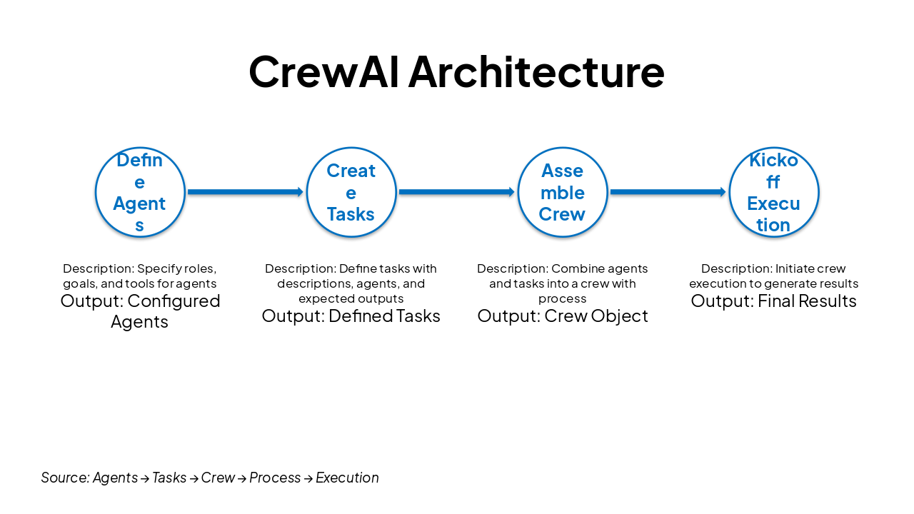 Source: Agents → Tasks → Crew → Process → Execution
