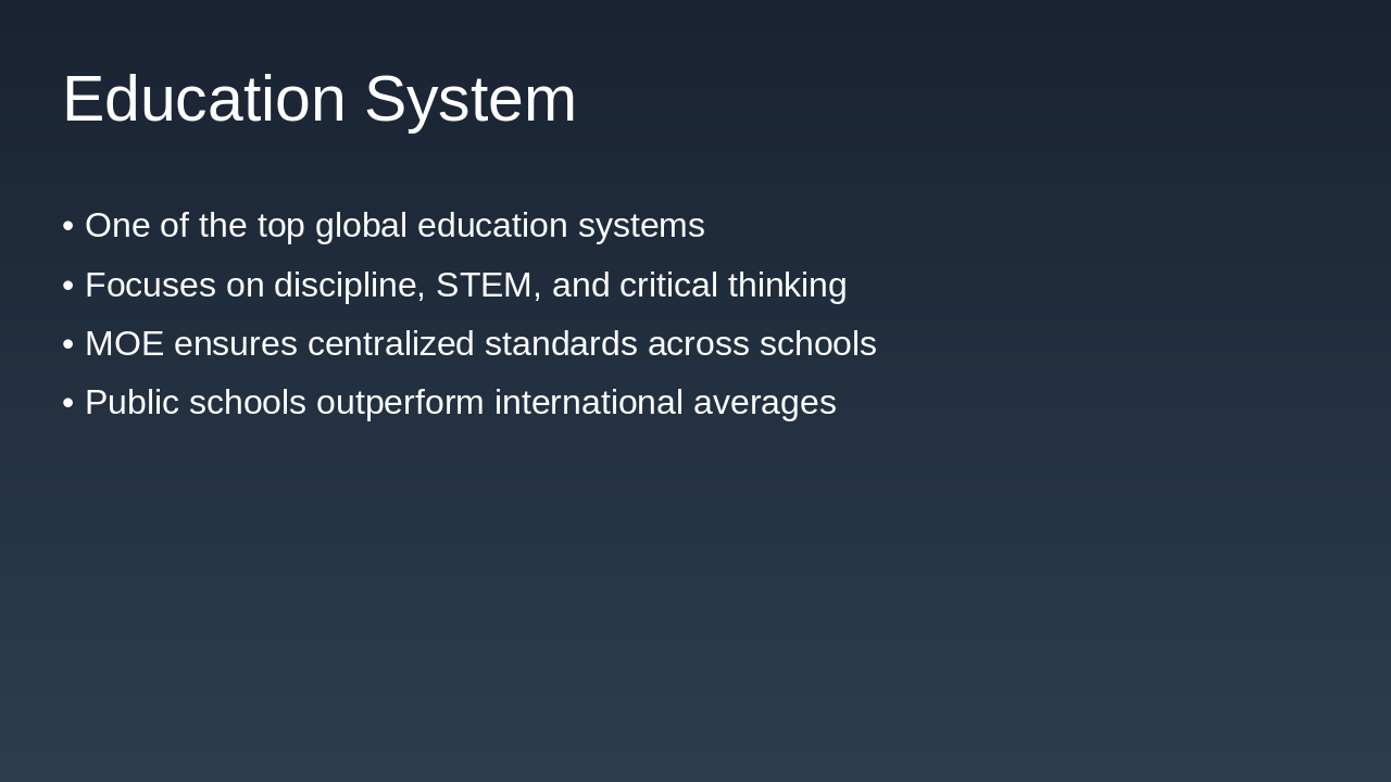 The slide provides an overview of a highly developed free-market economy that ranks fourth richest globally by GDP per capita. It highlights the economy's role as a global financial center and major trade hub.