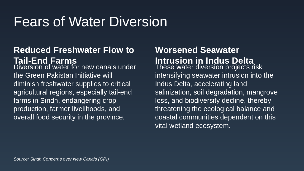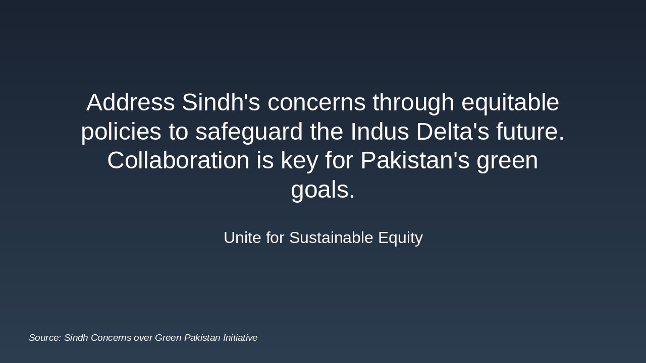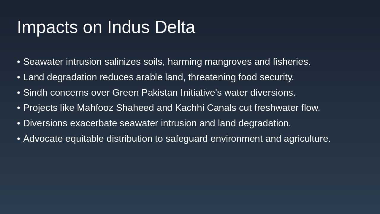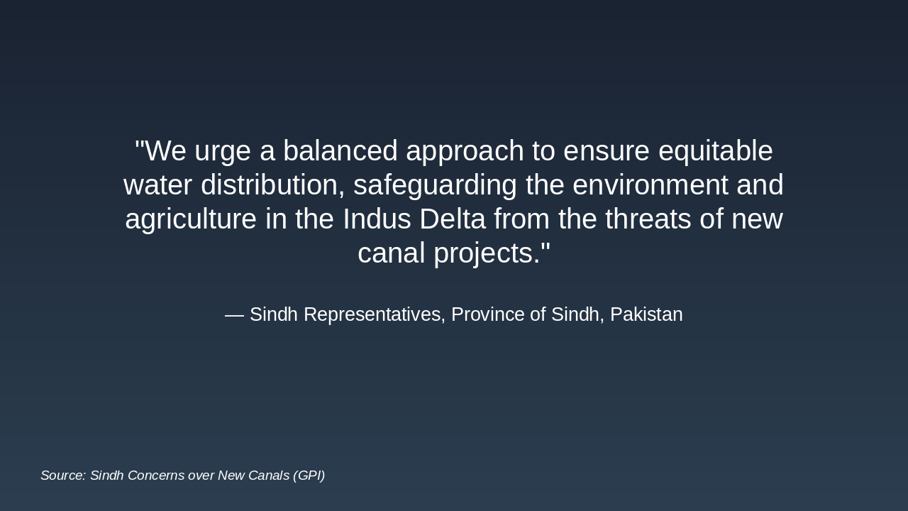 > We urge a balanced approach to ensure equitable water distribution, safeguarding the environment and agriculture in the Indus Delta from the threats of new canal projects.