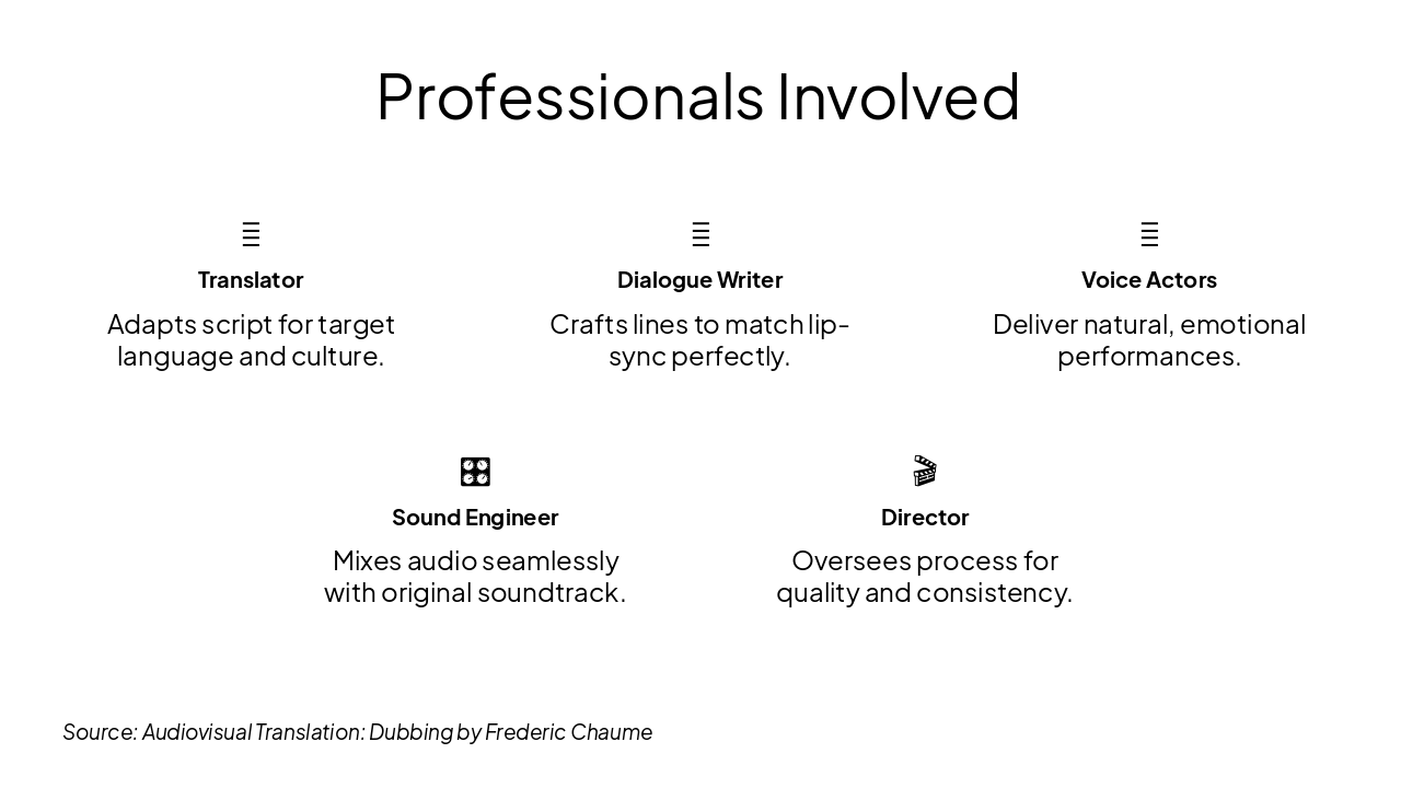 Source: Audiovisual Translation: Dubbing by Frederic Chaume