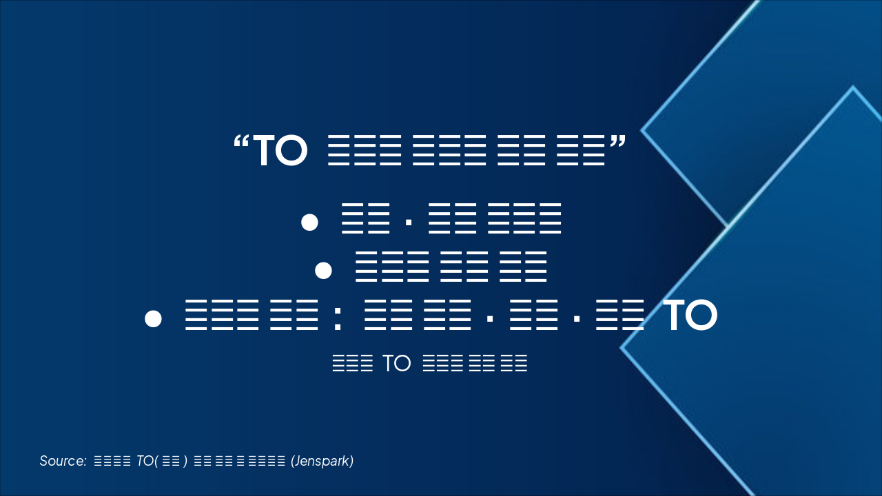 제목: 효과적인 TO(정원) 관리 전략 및 실행방안 (젠스파크 스타일) 스타일: 모던, 심플, 인포그래픽 중심, 톤다운 블루 & 그레이 컬러, 내부 보고용 전략 프레젠테이션 슬라이드 1: 표지 - 제목: 250인 중소기업을 위한 효과적인 TO 관리 전략 - 부제: 승진 및 조직 구조 안정화를 위한 내부 전략 문서 - 디자인: 그래디언트 블루 백그라운드 + 인포그래픽 아이콘 슬라이드 2: 문제 진단 - 인력 구조 불균형(신입↓, 경력↑) - 자동 승진 문화 → 항아리형 구조 위험 - 리스크: 인건비 부담, 리더십 포화, 후속세대 약화 - 비주얼: 인력 구조 피라미드 그래프 슬라이드 3: 전략 목표 - 조직 균형 유지 (피라미드형) - 공정·투명한 TO 체계 확립 - 평가·성과 중심 승진 - 비주얼: 3대 전략 목표 인포그래픽 (원형 아이콘) 슬라이드 4: TO 관리 원칙 - 원칙1: 상위 Band TO 제한 준수 - 원칙2: 역할 기반 직급 운영 - 원칙3: 평가 + 역할 병행 승진 - 원칙4: 연공 제한, 예외관리 체계화 - 디자인: 4원칙 타임라인 스타일 슬라이드 5: 수치 기반 TO 모델 - 예시 비율: B3 40% / B4 30% / B5 15% / B6 10% / B7 4% / B8 1% - 인력 변동 예측 그래프 포함 - TO 초과 인원 현황 Dashboard - 비주얼: 바 차트 + 도넛 그래프 슬라이드 6: 승진·평가 연계 - 평가 상위 20% + TO 여유 시 승진 - 역량 매트릭스 기반 기준 재설계 - 2년 연속 S등급 시 자동승진 - 기여도 점수제 도입 - 디자인: 2단 비교 테이블 (기존 vs 개선안) 슬라이드 7: 시뮬레이션 결과 - 자동승진 유지 vs 평가연계 운영 비교 - B6 이상 인력 비중 변화 그래프 - 비주얼: Before-After 막대 그래프 슬라이드 8: 실행 로드맵 - ’25 Q1: 기준 수립 / 진단 - ’25 Q2: 프로세스 설계 - ’25 Q3: 시범운영 - ’25 Q4: 전사 확대 - 비주얼: 로드맵 타임라인 (4분기 기준) 슬라이드 9: 리스크 및 대응전략 - 자동승진 기대감 → 소통 강화 - 평가 신뢰성 확보 → 평가자 교육 - 경력직 증가 → 탄력 TO 운영 - 비주얼: 리스크-대응 매트릭스 슬라이드 10: 결론 - 핵심 메시지: “TO 관리는 숫자가 아닌 전략” - 균형·공정성·성장 중심 재설계 - 인사팀의 역할: 데이터 기반 의사결정 - 디자인: 심플 마무리 슬라이드