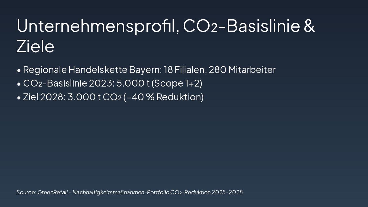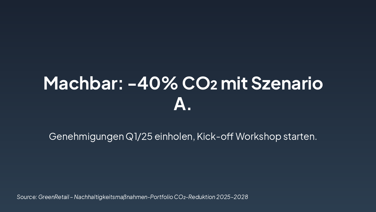 Slide 1 - GreenRetail – Nachhaltigkeitsmaßnahmen-Portfolio CO₂-Reduktion 2025–2028