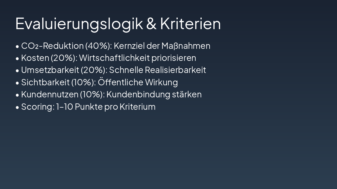 Ziel: −40% CO₂ (Scope 1+2) bis 2028 | Budget: €250.000