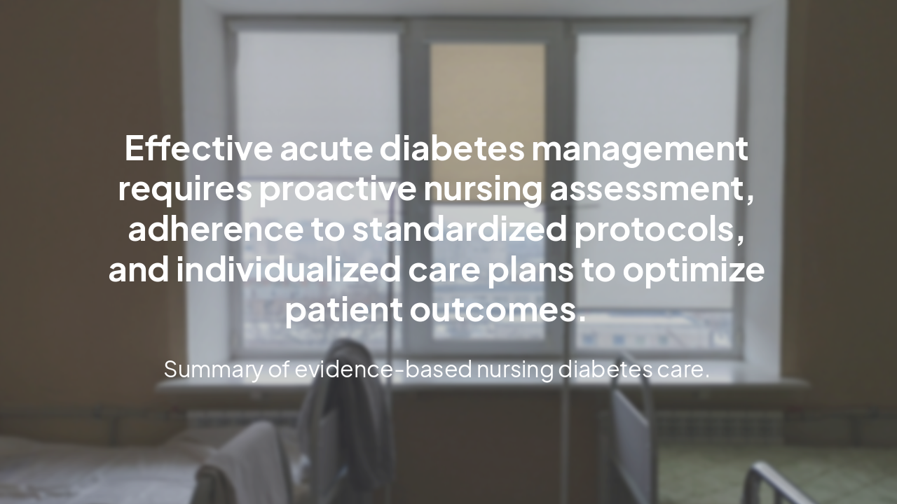 Effective acute diabetes management requires proactive nursing assessment, adherence to standardized protocols, and individualized care plans to optimize patient outcomes.