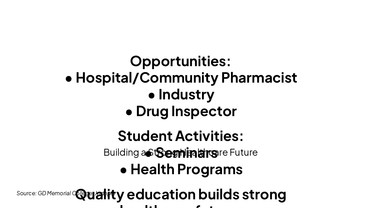 The slide showcases specialized labs for pharmaceutics, chemistry, pharmacology, and pharmacognosy, equipped for drug formulation, synthesis, analysis, and natural drug research. It also highlights qualified faculty and hands-on industrial training for practical pharmaceutical experience.