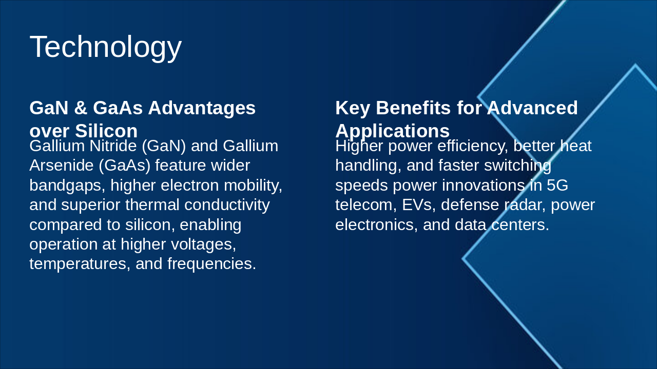 Brief explanation of gallium-based semiconductors (GaN, GaAs) and why deep-tech matters for 5G, defense, EVs, and power electronics.