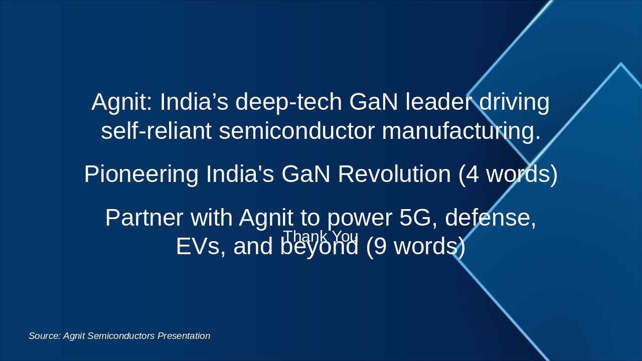 Create a professional, clean white-blue themed PowerPoint presentation titled 'Agnit Semiconductors – India’s Emerging Deep-Tech Gallium-Based Semiconductor Startup.' Follow this structure: