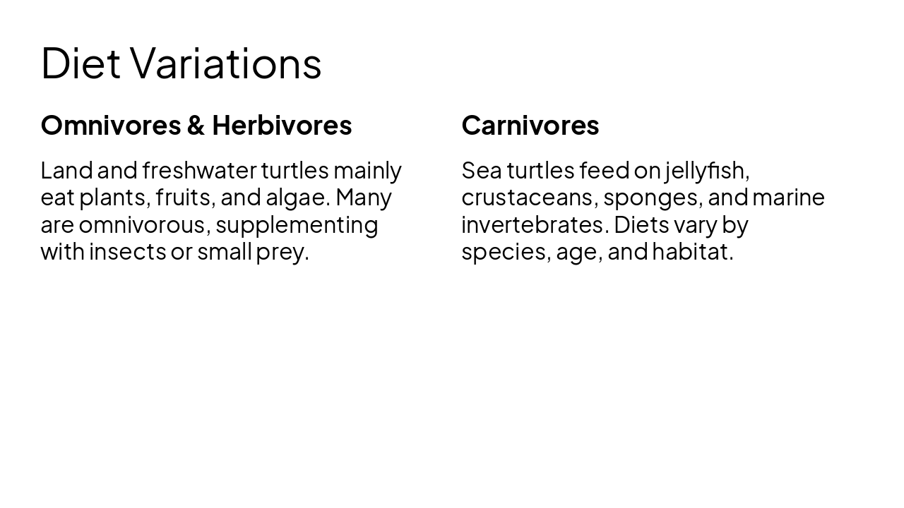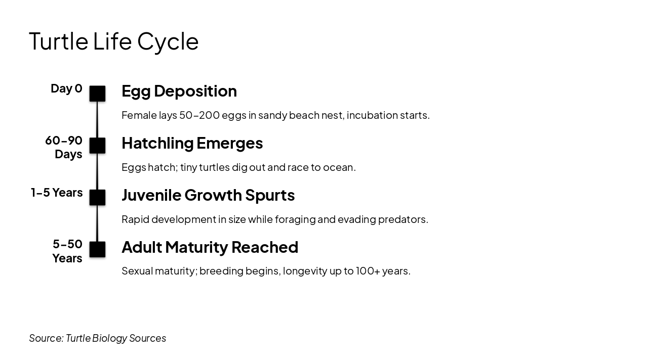 { "features": [ { "icon": "π’", "heading": "188 Years Old", "description": "Jonathan the tortoise is the oldest recorded land animal at 188 years." }, { "icon": "π‘οΈ", "heading": "Shell from Fused Ribs", "description": "Turtle shells form from fused ribs and vertebrae for ultimate protection." }, { "icon": "πͺ", "heading": "Survives Months Without Food", "description": "Tortoises endure months without eating due to their slow metabolism." }, { "icon": "πΊοΈ", "heading": "Migrates 10,000 km", "description": "Some sea turtles travel up to 10,000 kilometers across vast oceans." }, { "icon": "π§", "heading": "Senses Magnetic Fields", "description": "Turtles navigate using Earth's magnetic field during epic migrations." } ] }