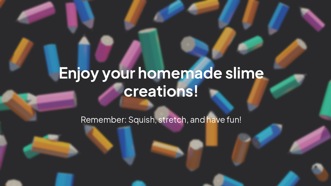 | 5. Knead | Squish and stretch the slime with your hands until perfect. |
