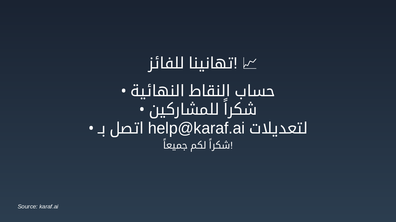 الفريق ذو أعلى النقاط يفوز بالمسابقة.